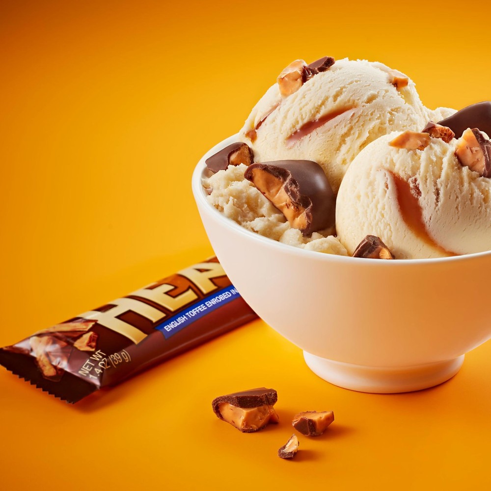 Contains eighteen (18) 1.4-ounce English Toffee Enrobed in Rich Chocolatey Coating Candy Bars in a bulk box A toffee candy bar is perfect for quick snacking at home, at work and on the go Kosher and gluten free chocolatey English toffee candy bars individually wrapped for lasting freshness and convenience Bring chocolatey toffee treats with you to birthday parties, anniversary dates and bake-off events Prepare your taste buds for chocolatey English toffee candy bars that are perfect for sharing and savoring as you create Easter, Christmas, Valentine's Day and Halloween candy treats Includes cold packs to prevent melting during summer.