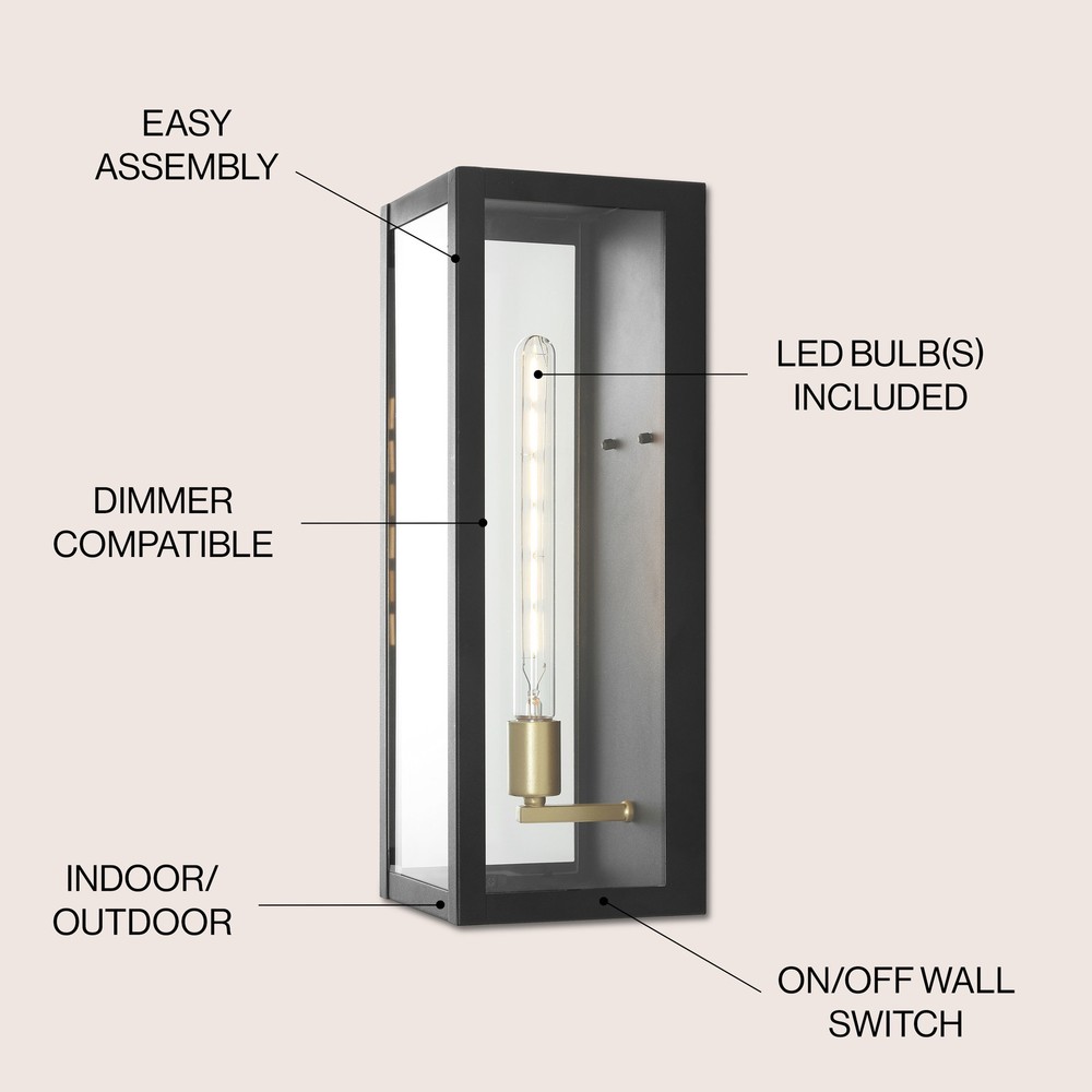 The Calder-inspired loops of our minimalist floor lamp feature a dimmable LED that is integrated into the light's design. Slim 47" tall standing lamp provides bright, clear light for reading, or ambient light by using the dimmer settings. Add a contemporary touch to your living room, dining room, entry, or office. Finished in stylish matte black. Features:Add a piece of modern sculpture to your home with this LED floor lamp's unique double-oval designIntegrated LED will never need replacing and can last 15 years or moreQuality touches include an easy-to-use foot-step dimmer switch and a cord wrapped in black silk.Built-in LED lights, so no bulbs are requiredAs this fixture must be hardwired, we recommend a professional electrician manage installationColor: Black with clear shadeBody Free Shipping Over $49.99* Details 1-Light Iron/Glass Industrial LED Outdoor Lantern, By JONATHAN Y Product Description: The Calder-inspired loops of our minimalist floor lamp feature a dimmable LED that is integrated into the light's design. Slim 47" tall standing lamp provides bright, clear light for reading, or ambient light by using the dimmer settings. Add a contemporary touch to your living room, dining room, entry, or office. Finished in stylish matte black. Features: Add a piece of modern sculpture to your home with this LED floor lamp's unique double-oval design Integrated LED will never need replacing and can last 15 years or more Quality touches include an easy-to-use foot-step dimmer switch and a cord wrapped in black silk. Built-in LED lights, so no bulbs are required As this fixture must be hardwired, we recommend a professional electrician manage installation ColorBlack with clear shade Body MaterialMetal/Silicone IncludesOne (1) lamp Assembly Required Dimensions: Lamp47 inches high x 14.75 inches wide x 11.25 inches deep About us: You see a lamp. We see a decorative work of art. A perfectly curved shade casts a dramatic shadow on a floor. Compatible with LED lightbulbsas easy on the environment as they are on the eyes. The JONATHAN Y Lighting collection considers every detail from impeccably sourced materials to designer styling. And our prices are so attractive, we’ve transformed a functional necessity into a fashion accessory. JONATHAN Y Lighting - a fashion revolution in home decor.