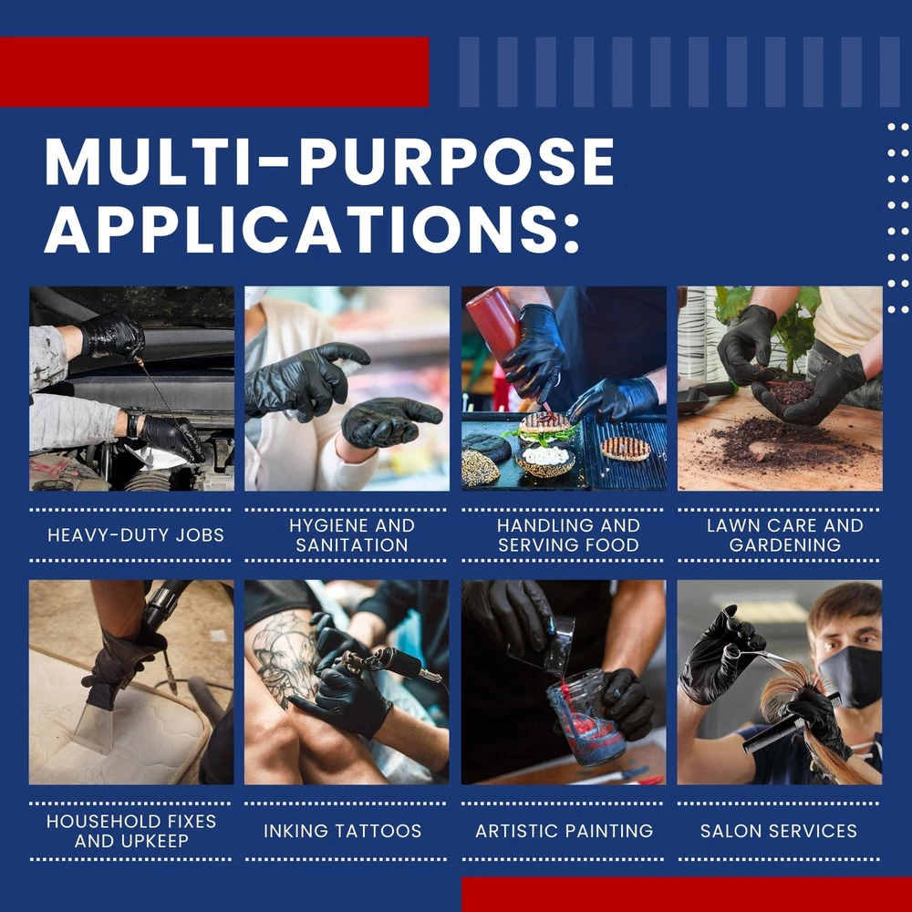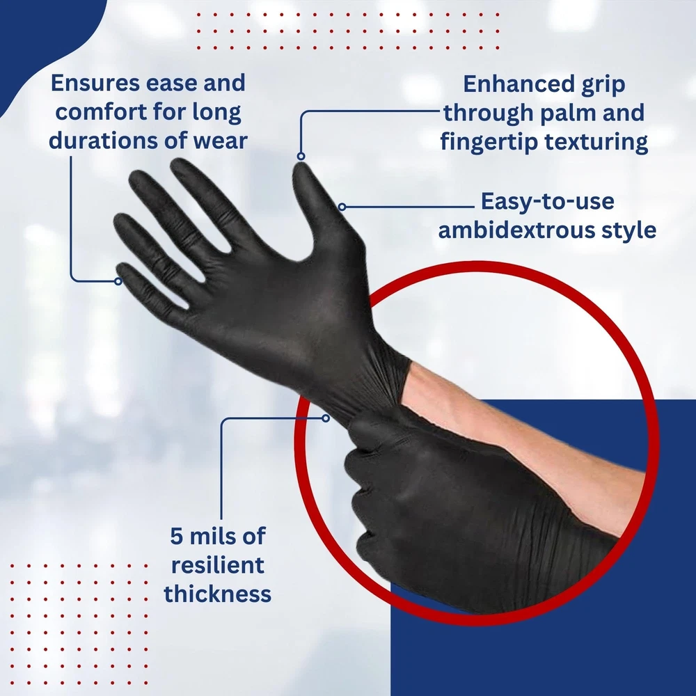 Enhanced Grip and Dexterity: The textured surface ensures a secure grip in both wet and dry conditions, while maintaining optimal dexterity for precise handling. Tear and Puncture Resistance: Designed to withstand tough conditions, these gloves are resistant to tears, punctures, and abrasions, offering reliable protection for hands. Multi-Purpose Utility: From home cleaning and janitorial tasks to food handling and medical applications, these gloves are versatile and suitable for various uses. Reduce Hand Fatigue: The ergonomic design and optimal thickness reduce hand fatigue during extended periods of use, increasing productivity. Quality Assurance: Manufactured to meet stringent quality standards, these gloves undergo rigorous testing to ensure consistent performance and reliability.