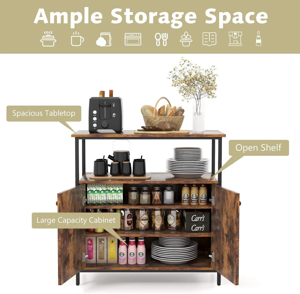 Industrial Buffet Sideboard with Storage & Coffee Bar Open Shelf