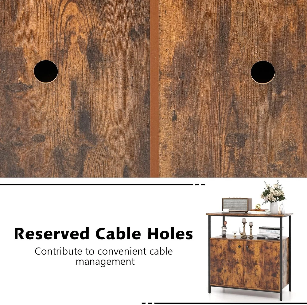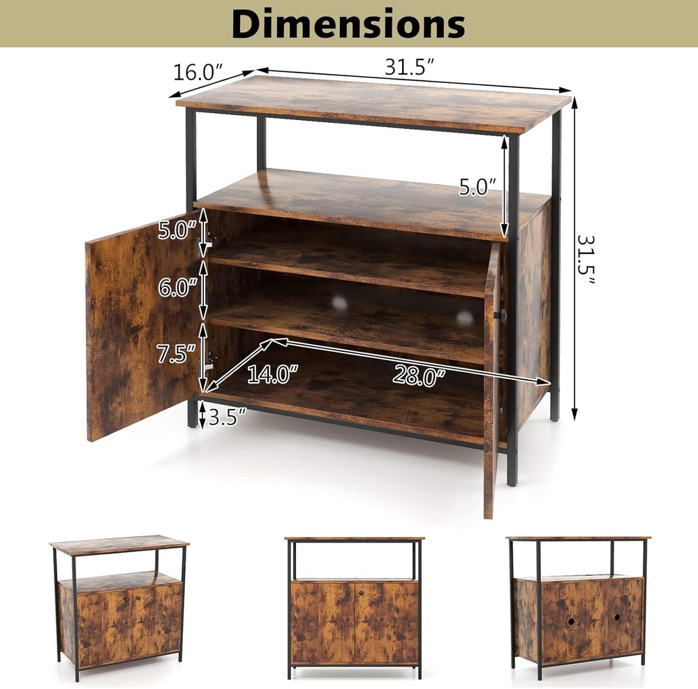 Product Description Something We’d Like to Share: The buffet cabinet with stylish appearance and practical storage function is the ideal choice for modern living space. You can fit it wherever you like, such as in the kitchen, dining room, living room or hallway. Whether you’d like to store kitchen supplies or display decorations, the kitchen sideboard with open and enclosed storage space will serve its purpose! And the sideboard cabinet itself is also a decorative piece of furniture. With the collision of black metal frame and rustic brown boards, the industrial storage cabinet satisfies you taste you modern furnishing and can elevate the style of the space. Specifications: Color: Rustic Brown Material: Metal, MDF, Engineered Wood Overall Dimensions: 31.5" x 16" x 31.5"/80 x 40 x 80 cm (L x W x H) Clearance Between Tabletop & Cabinet: 5"/13 cm Inner Dimensions of Bottom Shelf: 28" x 14" x 7.5"/71x 36 x 19 cm (L x W x H) Height of Upper Shelf: 5"/12 cm Height of Middle Shelf: 6"/15 cm Clearance Between Cabinet and Floor: 3.5"/ 9 cm Weight Capacity of the Top: 110 lbs/50 kg Net Weight: 60.5 lbs/27.5 kg Package Includes: 1 x Buffet Cabinet 1 x Instruction On Aug 14, 2025 at 20:05:12 PDT, seller added the following information: