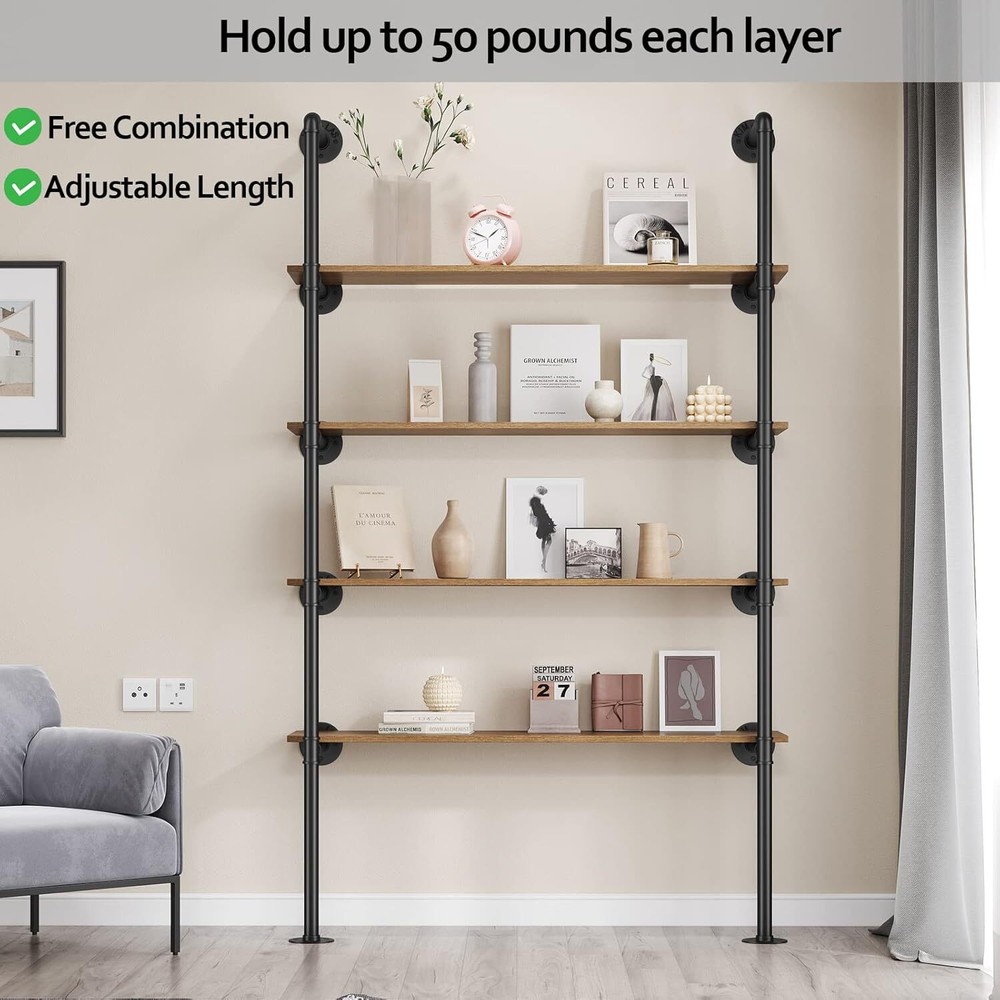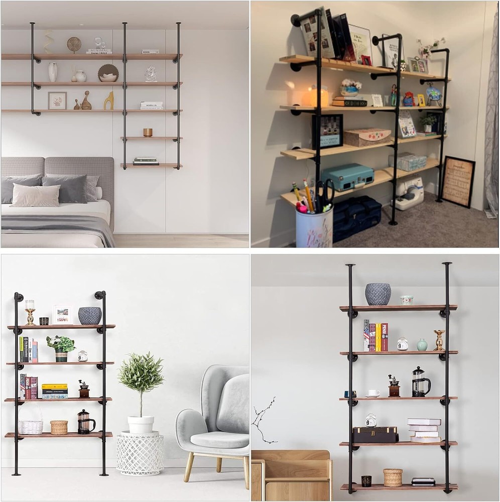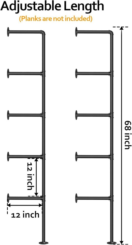 Product Description Industrial Iron Pipe Shelf Wall Mount, Farmhouse DIY Open Bookshelf, Pipe Shelves for Kitchen Bathroom, bookcases Living Room Storage, 2Pack of 5 Tier SIZE: Industrial iron pipe shelving is freely connected, Total Tall is 68 inches, 12 inches in between each tier of bracket, deep 12 inches. Note: It is recommended to place the wooden board less than or equal to 10 inch.wooden board is not contained. STYLE: This pipe shelves is designed with industrial-looking, blend the industrial aesthetic in any home, office, bar, or cafe, it is beautiful and practical, give a touch of fashion and win eyes catching easily. INSTALL TYPE: Pipe rustic shelves for wall can be suspended ceiling, also be standing the floor, you can decide the type of installation as you like. WIDE APPLICATION: The home decor floating pipe shelf Keep all books toys together and easily for you to access. Working as a bookshelf, storage shelf or display rack, it is perfect for any home, garage, workshop or office. EASY INSTALLATION: The farmhouse pipe shelves brackets unit comes with screws needed. Also a installation instruction help you to fitting pipe parts and line up the pipe brackets quickly, easily fix the flange to the wall. About Us We are a reputable seller with many years of experience selling on eBay. Our goal is to provide high-quality products and excellent customer service. Shipping Items will be shipped within 1-3 business days when we received payment. (Orders are not processed on weekends & holidays) Tracking information will be sent once item is shipped. Delivery time depends on destination and other factors Item is shipped to ebay address. Leaving correct address can minimize delay. For international shipping and shipping to Guam, Hawaii and Alaska, Please contact us before placing the order. International buyers please note: Import duties, taxes and charges are not included in the item price or shipping charges. These charges are buyer’s responsibility. We will try our best to reduce the risk of the custom duties. Local pick-up is unavailable at the moment. Contact Us We reply any email messages within 1 business / working days(off-duty at weekend). If you do not get a response from us, then please check your junk or spam mailbox. Our Business hours: Mon-Fri 9:00-18:00, UTC/GMT +8 hours. Please contact us either by clicking "contact seller" in the "purchase history" section or simply click "ask a question" at the bottom of this page. If you are unsatisfied with our item or service, please contact us before leaving any feedback. We are committed to resolve all issues in a friendly and satisfactory manner.