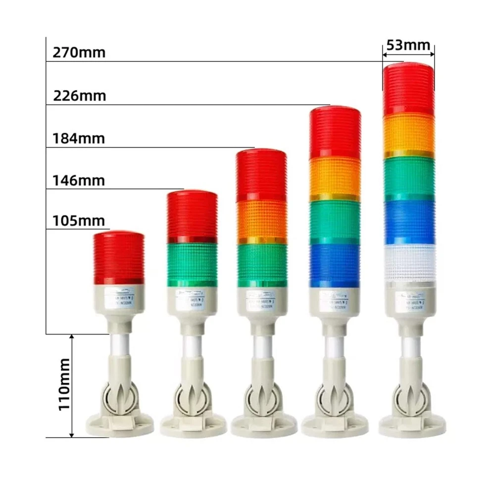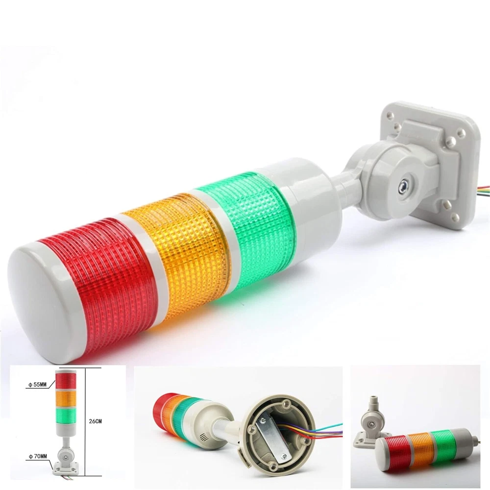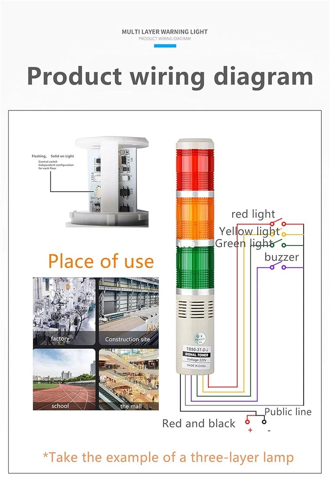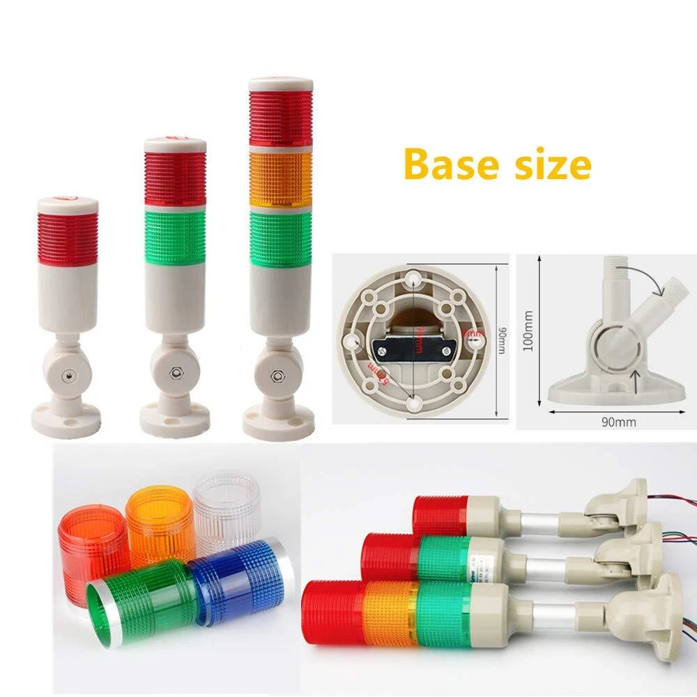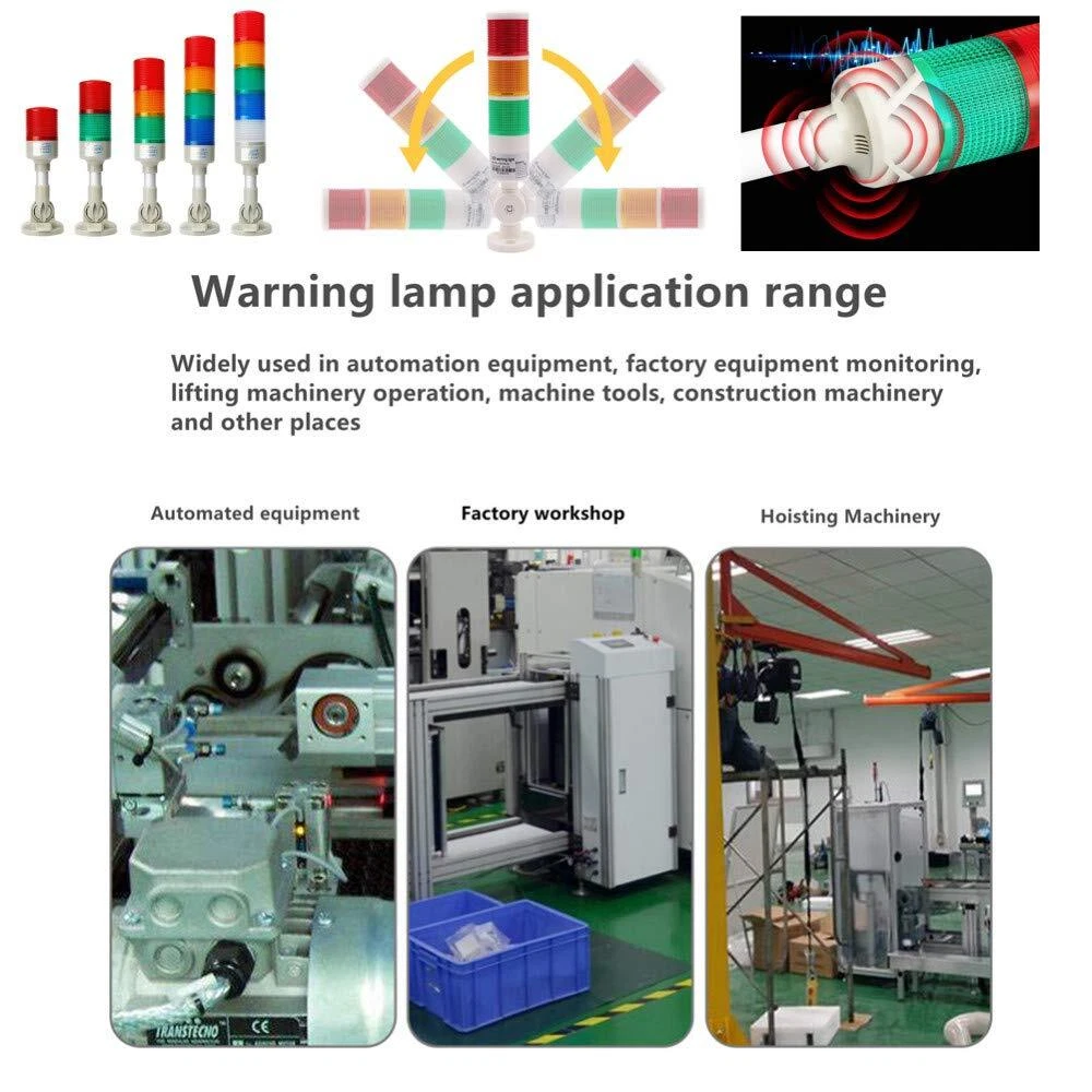 🔆PC lampshade, high purity and high brightness- The lampshade has a high light transmission effect, and dust will not enter the interior of the warning device, which is safe and durable. 🔆LED lamp beads-LED lamp beads are used inside, with high brightness and longer life than ordinary bulbs./ Foldable base-The base can be folded and turned 180°, covering a wider range, convenient and practical. 🔆High-decibel buzzer with buzzer warning light Built-in high-decibel buzzer, the sound is loud and crisp./ High-quality wire-warning light comes with wire, the number of wires is different in different sections, the wiring is more convenient. 🔆Scope of application- Multi-layer warning lights are widely used in automation equipment, factory equipment monitoring crane operation, machine tools, construction machinery and other places. Industrial LED Signal Tower Light Flashing with Buzzer Alarm Warning Lamp Light Mesh Topology constructed using 2.4GHz short-range wireless communication, suitable for harsh environments LED long bright/blinking modular multi-layer signal light that can be spliced arbitrarily Adopt special colored flashlight cover, eye-catching from a long distance Adopt LOCK interface type structure between each layer of lampshade, no other tools can be used to replace or add other color modules QTGA products use an integrated lampshade, giving the impression that simple packaging is not simple The volume with buzzer can be Max. 90dB at 1m Customers can choose to order their own two buzzer sound types or high volume (105dB) buzzer type Can use triode (open collector NPN) wiring, direct drive in PLC Blinking frequency: 60~80 times/min Material: lampshade-PC, lamp body-ABS Ambient temperature for use: -30°C ~ +50°C Protection level: Standard type-IP65, built-in buzzer type-IP54 Technical certification: CE, UL Wireless communication rules: Zigbee (IEEE802.15.4) Feedback 1.Your feedback is very important for us. 1 or 2 star low rating will affect our performance. So please leave all 5 stars positive feedback, if you are satisfied with the business. 2. Please contact us in time, if there is any problem with the transaction Note: All damages/defects must be reported within 5 days upon receiving the item(s) and must provide pictures. Please email us if you have any further question or concerns. Our knowledgeable representatives are committed to your satisfaction. We would appreciate if you contacted us via Email if your items have any issues so we can resolve your matters accordingly before leaving a feedback. Thank you for visiting! Store hours: 9:00am-5:00pm