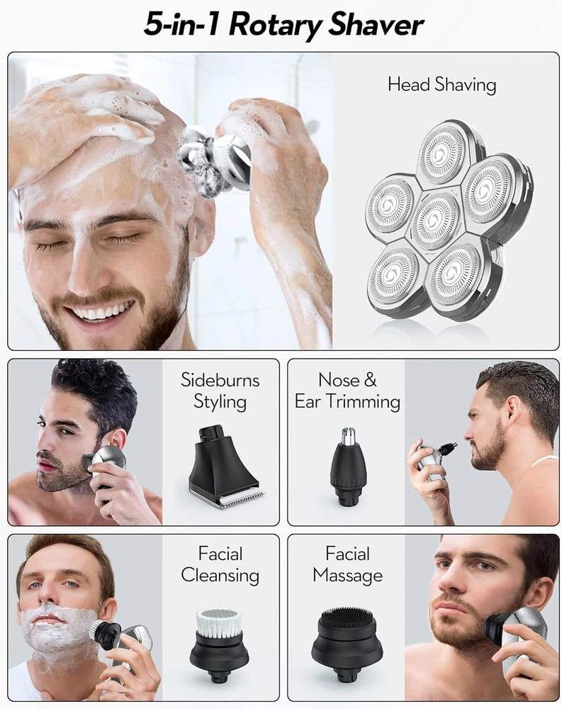 Industry Leader Electric Head Shaver for Men - Ultimate Grooming Solution ‹ › ‹ › ‹ › ‹ › ‹ › ‹ › ‹ › ‹ › ‹ › ‹ › Industry Leader Electric Head Shaver for Men -Ultimate Grooming Solution Features: Advanced 6-blade system for a superior shave Includes rotary shaver, hair clipper, nose/ear hair trimmer, facial cleansing brush, face massager, and 3 guide combs IPX7 waterproof shaver for wet and dry use Type-C charging port for fast and convenient charging Smart LED display for battery life, maintenance needs, and travel lock status Benefits: Efficiently covers more area for a quicker, smoother shave Complete grooming solution for head and face shave Versatile for different shaving routines Convenient and uninterrupted shaving with fast charging Always informed about battery life and maintenance needs Why choose our Industry Leader Electric Head Shaver? Experience the ultimate grooming solution with our Industry Leader Electric Head Shaver for Men. With its advanced 6-blade system and versatile grooming attachments, this shaver ensures a smooth and efficient shave. Whether you prefer a wet or dry shave, this IPX7 waterproof shaver adapts to your needs. Plus, the Type-C charging port and smart LED display make shaving convenient and hassle-free. Trust in over 10 years of market experience and 20 years of technical expertise with , the industry leader in men's electric shaver technology. Elevate your shaving experience and choose the best for your grooming needs. Shipping Free & Fast Shipping - We offer free shipping to most of the USA with a normal delivery time of 3-7 days. However, due to the current situation, additional delivery time (up to 3 weeks) may be required for some items. Alternative Carriers - We may use alternative carriers (e.g. USPS, FedEx, UPS, etc.) to ensure your package arrives safely and on time. Due to the use of multiple carriers, we are unable to provide a tracking number automatically. Handling Time - Orders are processed and shipped within 1-2 business days of receiving cleared payment. Shipping Restrictions - Shipping to Alaska, Hawaii, Puerto Rico, Guam, and other US territories may incur shipping charges or delivery restrictions. Please contact us before ordering, or your order can be refunded/cancelled. State Restrictions - There may be restrictions based on your state of purchase. For example, certain items may not be shipped to California due to state regulations. Contact for Tracking Updates - If you require tracking updates or have any concerns about the delivery of your order, please feel free to contact us, and we will be happy to assist you. Return 30-Day Hassle-Free Returns - We want you to be completely satisfied with your purchase. If you are not, you can return the item within 30 days of receiving it for a full refund or exchange. Easy Return Process - To start a return, simply contact us and we will provide you with a prepaid return shipping label and detailed instructions. Restocking Fee - There are no restocking fees for returns. However, the buyer is responsible for return shipping costs if the return is not due to a seller's error. Refund Processing Time - Refunds will be processed within 5 business days of receiving the returned item in its original condition. Payment We accept all major credit cards, PayPal, and Apple Pay for your convenience. Your payment information is secure and encrypted to ensure a safe and seamless transaction. Please complete your payment within 3 days of purchase to avoid any delays in shipping. Feedback Your feedback is extremely important to us. We strive to provide the best products and customer service possible. If you are satisfied with your purchase, please take a moment to leave us a positive review. If you have any concerns or issues with your order, please contact us before leaving negative feedback. We are committed to resolving any problems and ensuring your satisfaction. Contact Us If you have any questions or concerns, please feel free to reach out to our customer support team. You can contact us through the eBay messaging system. We are available Monday to Friday, 9:00 am to 5:00 pm EST, and we will do our best to respond to your inquiry within 24 hours. Thank you for supporting our small family business! Unit Quantity: 1 Features: Cordless,LED Display,Waterproof,Wet/Dry,6-blade system,Complete grooming solution,Rotary shaver,Hair clipper,Nose/ear hair trimmer,Facial cleansing brush,Face massager,3 guide combs,Portable,Detachable head,Ergonomic design Body Area: Face,Nose,Head MPN: Head_Shavers_for_Men Brand: Unbranded Type: Multi-Function Shaver Department: Men Model: Head Shavers for Men Head Type: 5 Head Rotary Color: Silver Power Source: Battery Motor Type: Rotary Item Length: Head Shavers for Men Item Weight: 14 lb