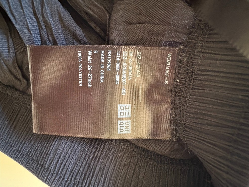 From the Ines De La Fressange x Uniqlo collaboration, this pleating skirt offers a chic, tailored silhouette in a versatile black silky pattern. The breathable polyester fabric makes it comfortable for all-day wear while maintaining a polished look. Details: Brand: Ines De La Fressange x Uniqlo Size: Women’s Small Color: Black Style: Pencil midi skirt Material: 100% Polyester Condition: Brand New Perfect for pairing with a blouse for work or a tee for a casual yet sophisticated look.