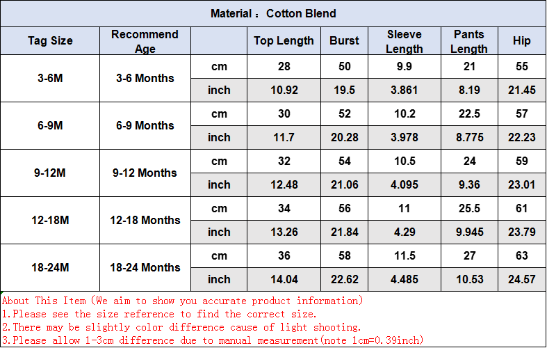 Description Product Description Department:Baby Toddler Boys Sleeve Length:Short Sleeve Material:Cotton Blend Closure:Pullover Age Reference:3-6 Months,6-9 Months,9-12 Months,12-18 Months,18-24 Months 18-24 Months Season:Summer Occasion:Casual,Daily Life Accent:Round Neck Type:Outfits Package Conttent: 1x T-shirt 1x Shorts Note: 1. There is 2-3% difference according to manual measurement. please check the measurement chart carefully before you buy the item. 1 inch = 2.54 cm 2. Please note that slight color difference should be acceptable due to the light and screen. 3.If the product has any quality problems, please feel free to contact us, we will help you solve the problem as soon as possible. Detail Image Delivery Time: USA To USA: shipped by USPS, 2-4 working days UK&AU To UK&AU: shipped by Royal Mail , 1-3 working days China To USA: shipped by China Post Epacket, 7-15 working days China To UK&AU: shipped by China Post Epacket, 15-25 working days China To Other Countries: shipped by China Post Epacket, 25-35 working days Shipments & Payment: Your order will be handled within 1-2 business days after receiving your clear payment. Weekend excluded Tracking number will be provided for you ASAP. We accept PayPal. Return Policy: If you are not satisfied with the items, you can return for refund within 30 days after receives it. Buyer pay the shipping cost for return. contact me for the return address, we will refund your money within 2 days after receive the returned items. About Feedback: I appreciate your Positive comment and 5 star DSR(Detailed Seller Ratings) if you are satisfied with the items and my job, I will do better because of your encouragement. Also I will leave Positive feedback to you once I receive yours, thank you very much! Please do Not leave Neutral or Negative feedback and low DSR if you are not happy with the transaction, I think most problems can be resolved through sincere communication. We try our best to reply to your emails ASAP. However, due to high volume of daily incoming emails and time zone difference, we may not be able to reply your emails immediately. Please allow 1-2 business day for us to reponse. Please feel free to contact me if you have any question, I'll try my best to solve it for you.