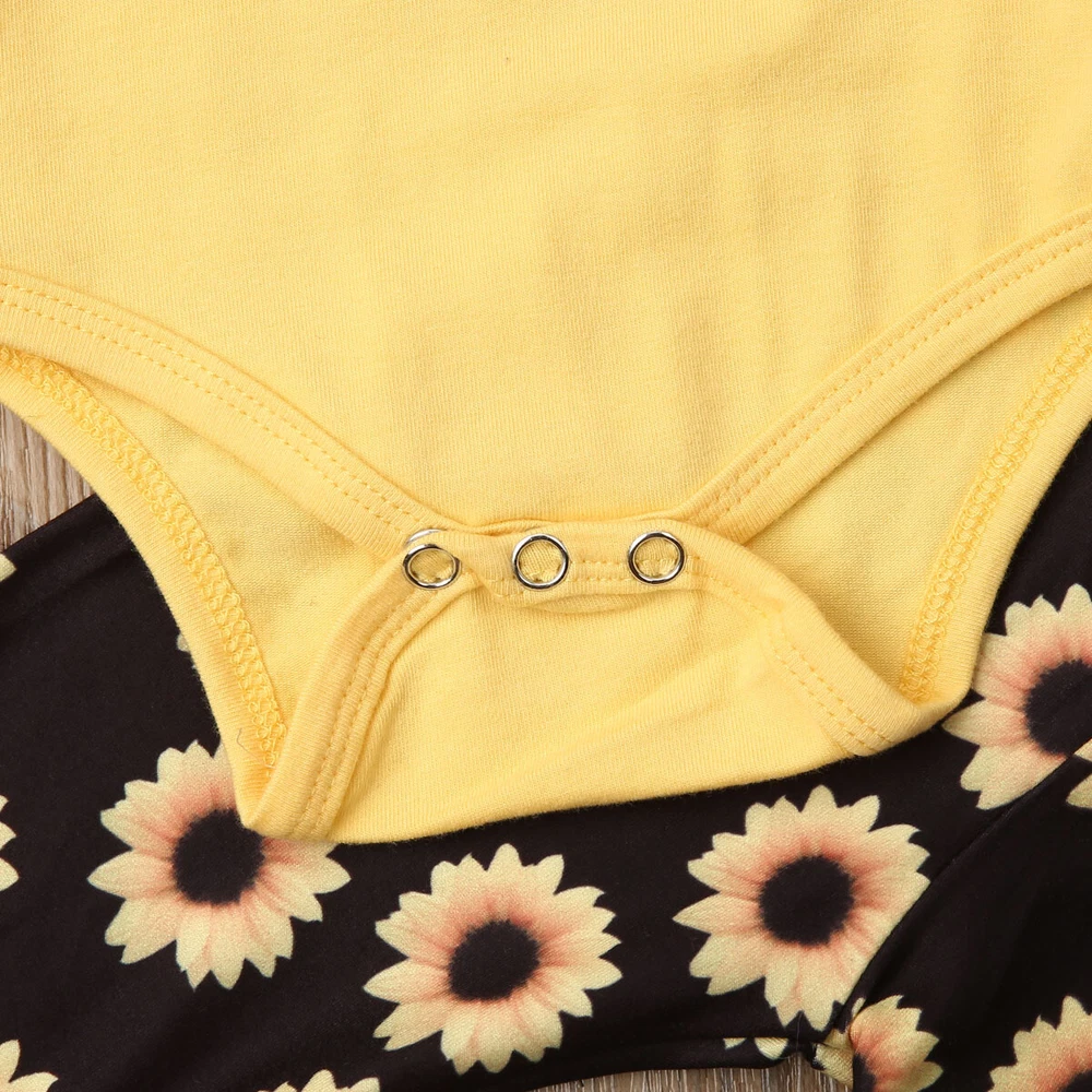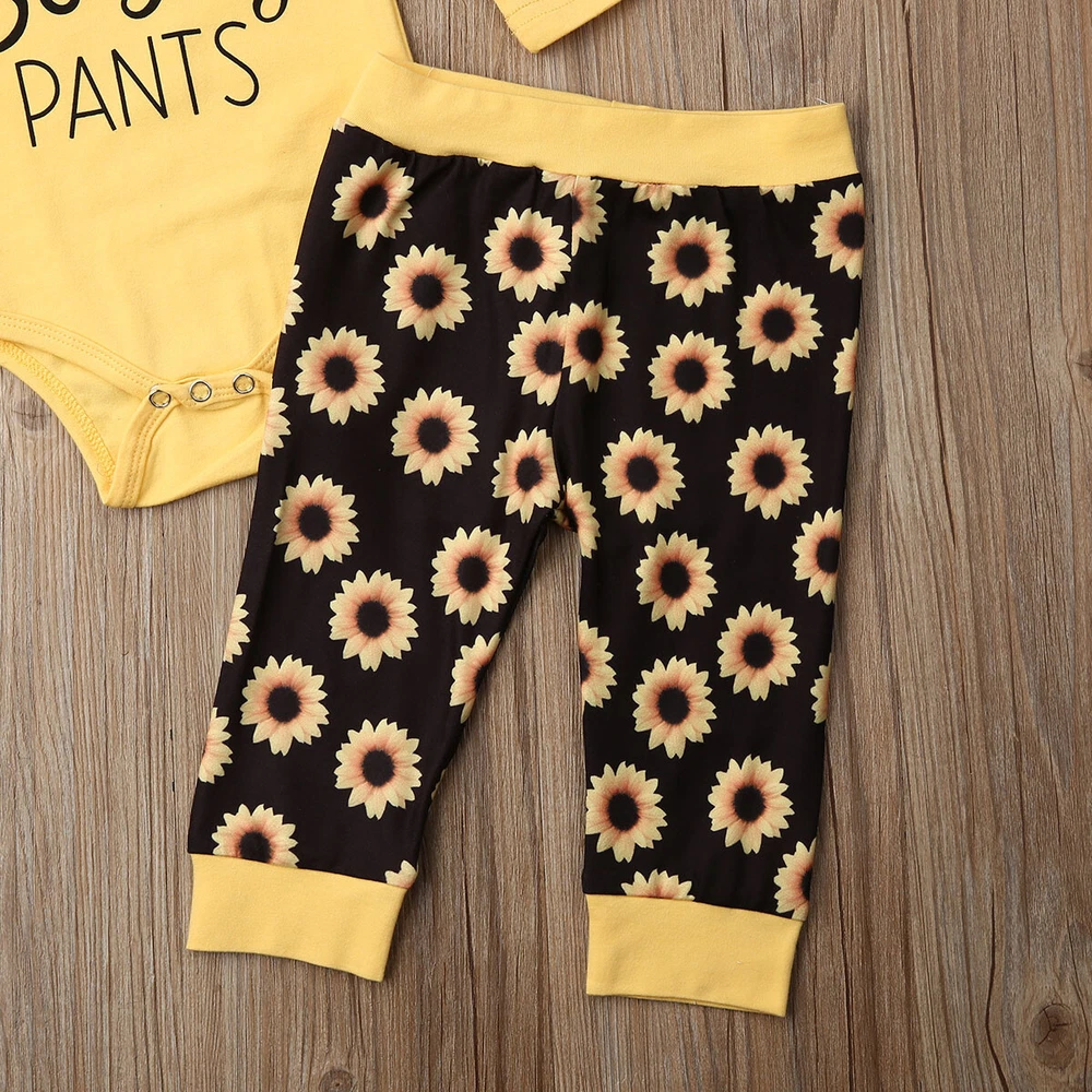 Infant Baby Girl Outfit Sunflower Romper Pants Headband Fall Autumn Clothes Set