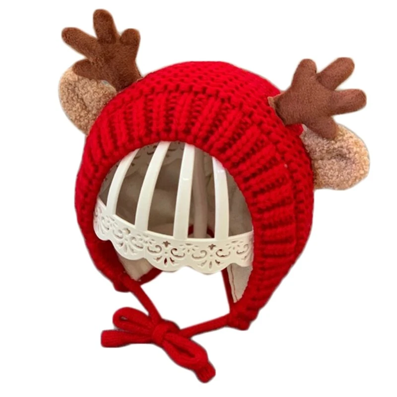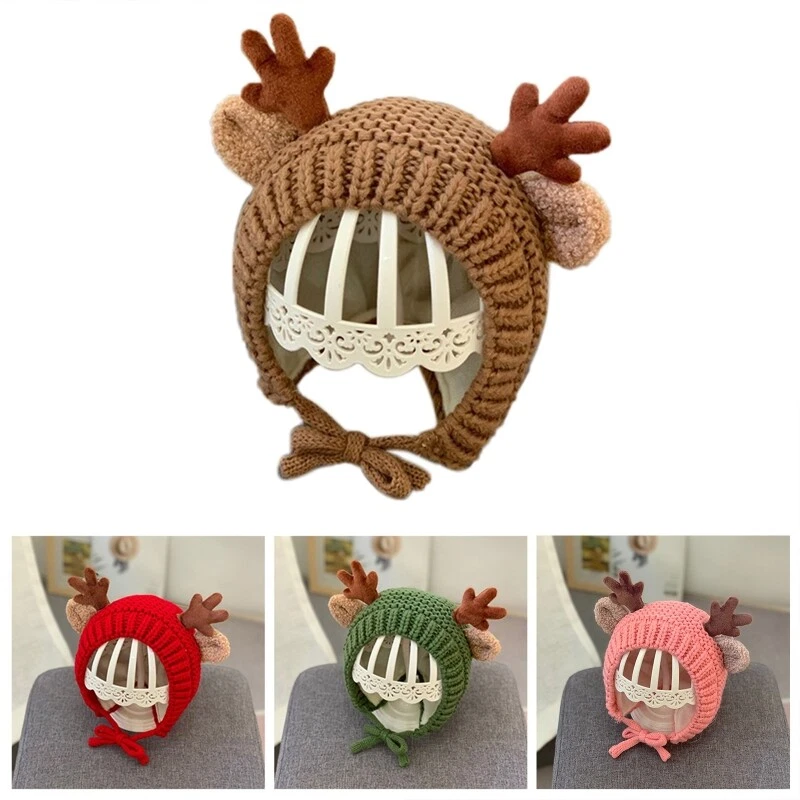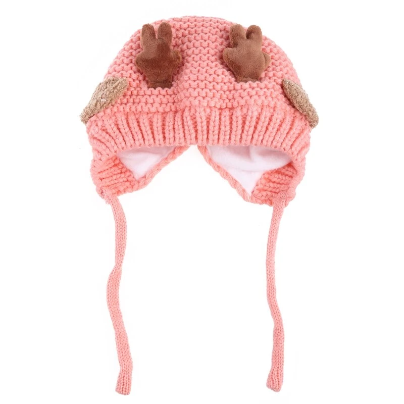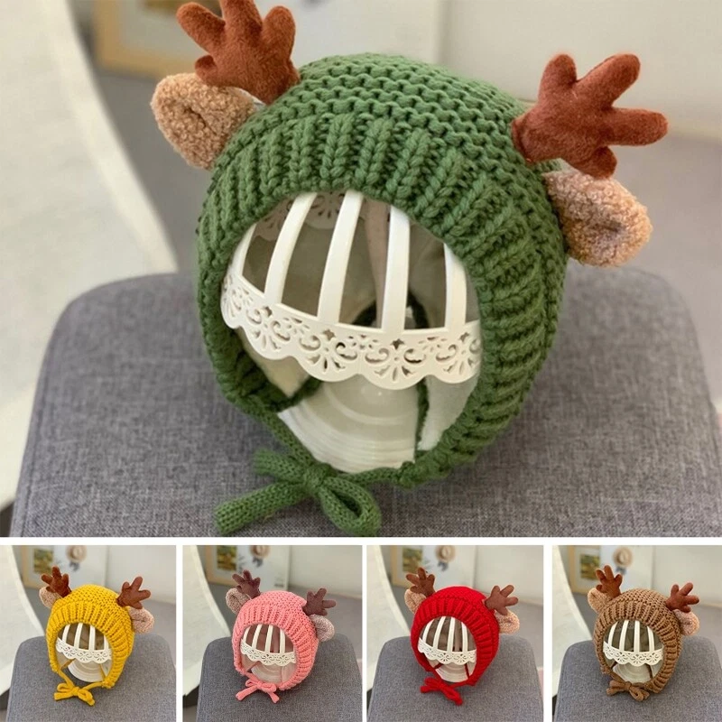 Infant Baby Knit Beanie Hat Christmas Reindeer Antlers Earflap Warmer