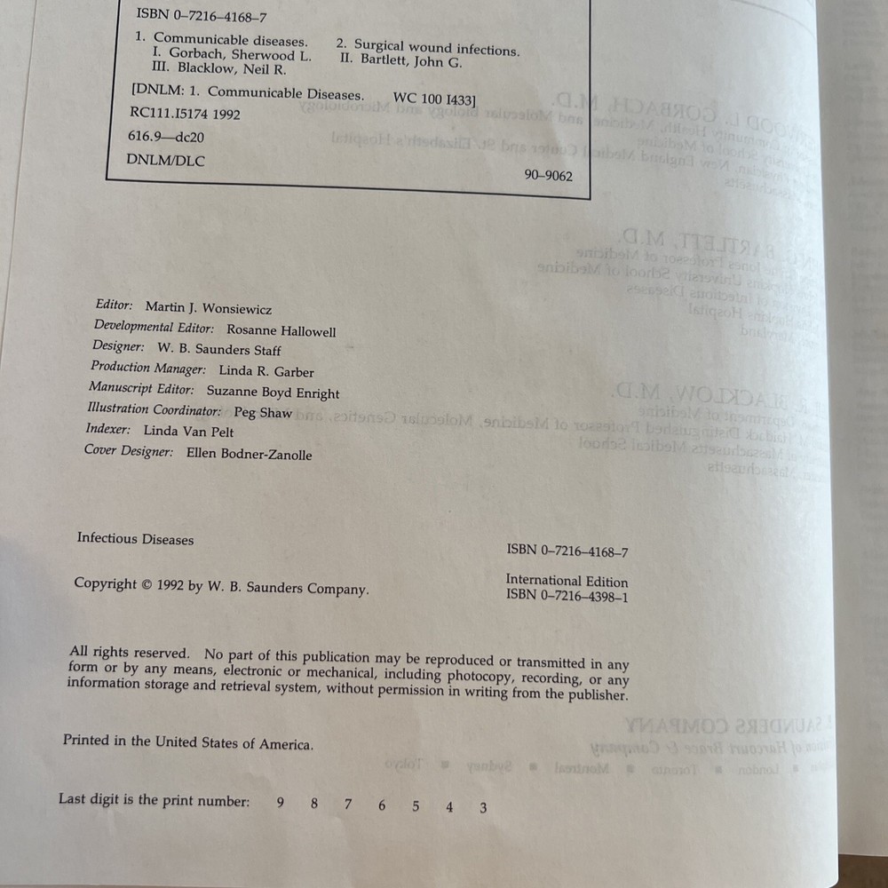 Infectious Diseases by Sherwood L. Gorbach Hardcover 1992 Book is in very good condition no writing inside Pet smoke free home Big book