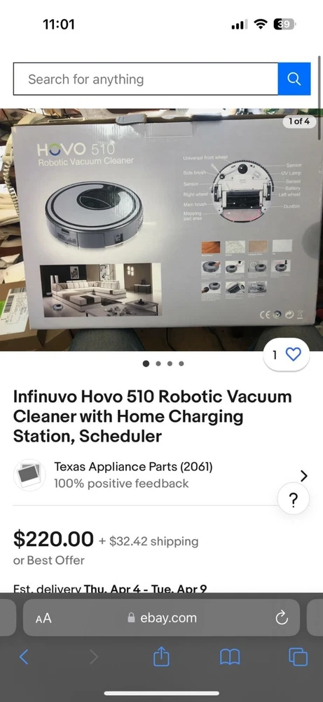 Infinuvo Hovo 510 Robotic Vacuum Cleaner with Home Charging Station, Scheduler. Shipped with USPS Ground Advantage.
