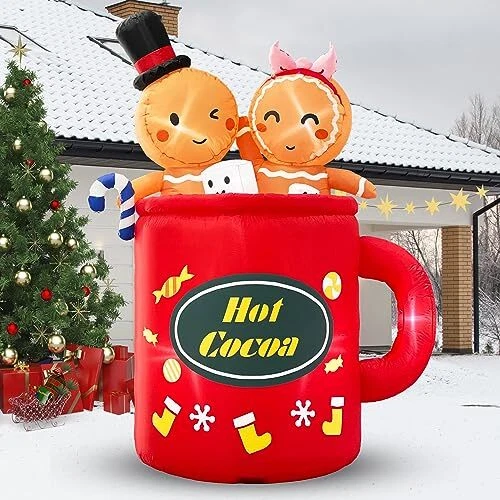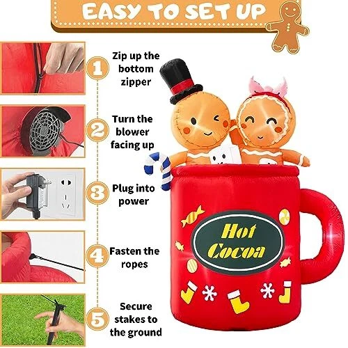 30 Days Return Policy Fast Delivery Trusted seller Gingerbread Inflatable Christmas Outdoor Decorations 6FT Cute Giant Blow Up Gingerbread Man Hot Coca Inflatables Yard Decor Light Up Led Lights Xmas Blowups for Indoor Outside Lawn Vacation Product Description Durable & Waterproof Material:This 6ft tall cute gingerbread inflatable christmas yard decorations made of thickened fabric which is waterproof,weather-proof,lightweight,fadeproof.The tighter stitching process to improve durability of hot cocoa inflatable gingerbread man blowups.This giant light up Led lights blow up ginger breadman inflatables outdoor decor will create a festive focal point in your outside front yard.It will creat a joyous and xmas festive holiday atmosp for your family Safety & Reinforcement Design: This funny gingerbread christmas inflatables outdoor decorations is equipped with 2 Fasten Ropes, 4 Ground Stakes and 2 fixed heavy sandbags that make it secure very well to the ground and no need to worry that it will fly away with the wind. Our large gingerbread blow up lawn decor adopt 12 volt power adapter to provide a safer for your inflation process, so that you can enjoy the joy of the vacation with more confidence Built-In Bright 6 LED Lights & Humanized Design: This merry christmas inflatable ornaments features 2 cute gingerbread men sitting together in hot cocoa mugs playing dice, very funny. The build-in 6 LED lights are super bright which makes the lighted christmas blow up yard decorations show a bright effect at night and light up your yard, garden. Your kids and neighbors will be unconsciously attracted and create a warm winter night. For indoor and outhouse use Self-inflates Fast & Easy to Use: Built in a powerful blower, just zip up the zipper and plug in, the huge xmas inflatable decorations will self inflate in a short time. Then simply secure the inflatable christmas ornaments with stakes and ropes. Once the holidays are over, just Unplug it, self-deflate quickly and store it in the carry bag. Note: please make sure the zipper is closed and the blower is facing up when inflating Best Christmas Ornaments for Any Occasion: The inflatable gingerbread man is for any holiday event or party. Both kids and adults will love this fun presents christmas decor. Great for indoor, outside, front yard, patio,lawn, garden, stage prop, party, restaurants, cafes, home, party, Xmas, Holiday, Festivals, Vacation, Mardi Gras, New Years. The only thing you are worried about is just the 6 feet gingerbread inflatable Christmas will be stolen from your yard Shipping Returns Payment Shipping Shipping is FREE to all addresses other than APO/PO boxes in the lower 48 states. All our stock ships from US-based warehouses. Shipped via USPS or UPS (depending on location and package weight) Unless stated otherwise, all orders will ship within 24-72 hours of your payment being processed. Check our feedback to see the great reviews of FAST shipping we offer. Returns As our valued customer, we will do our best to make sure the product you receive arrives to you on time and as expected. If you are not satisfied with your purchase, please contact us within 30 days of receiving your order to process a return. Payment We currently accept payment via eBay managed payments only. Once payment is cleared, we will dispatch your shipment within 1-3 business days. Please refer to the "Shipping" tab for more information regarding shipping speed to your destination.