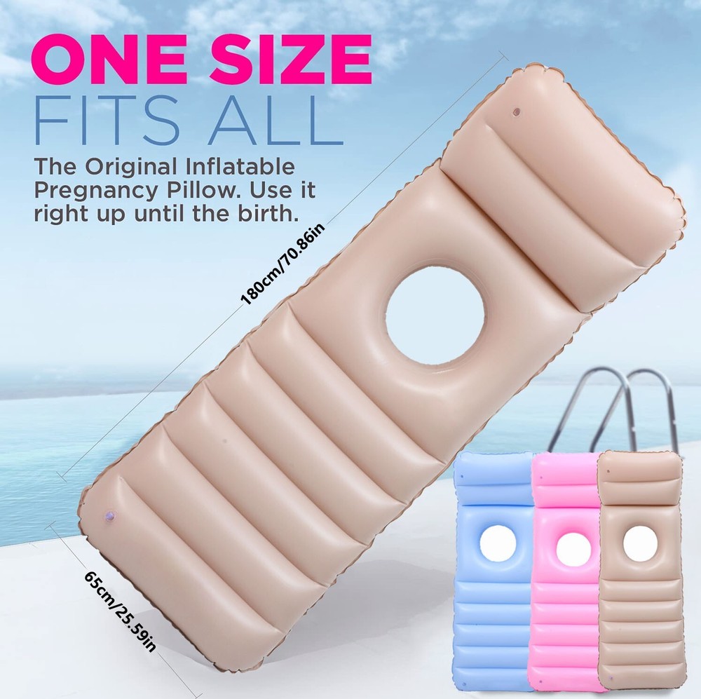 ULTIMATE COMFORT FOR PRONE SLEEPERS – Designed specifically for stomach sleepers, our inflatable pregnancy pillow features a central belly hole that cradles your growing bump while providing full-body support. No more pressure on your abdomen – sleep comfortably on your stomach again! RELIEF FROM PAIN & DISCOMFORT – Say goodbye to pregnancy-related aches! This ergonomic airbed evenly distributes weight, reducing pressure on your back, hips, and joints for deeper, more restful sleep. ADJUSTABLE FIRMNESS FOR CUSTOM SUPPORT – This Full Body Pregnancy Pillow Simply inflate or deflate to your preferred comfort level. The lightweight, portable design makes it perfect for home, travel, or hospital use – a must-have for every expecting mom!