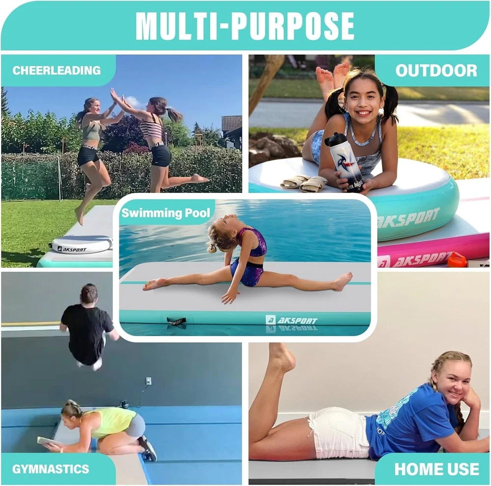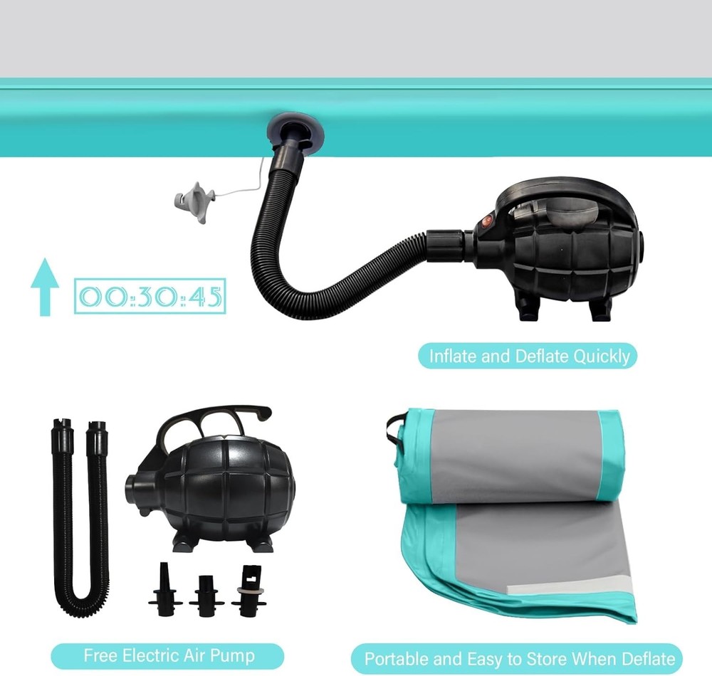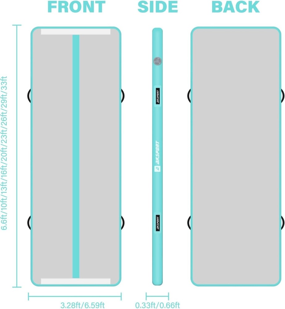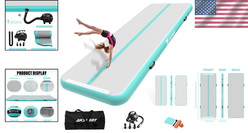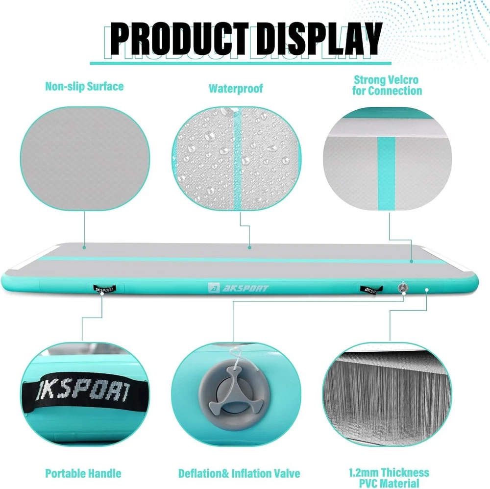 Inflatable Gymnastics Tumbling Mat - 10ft, 13ft, 16ft, 20ft & 23ft ‹ › ‹ › ‹ › ‹ › ‹ › ‹ › ‹ › ‹ › Inflatable Gymnastics Tumbling Mat Available Sizes: 10ft, 13ft, 16ft, 20ft & 23ft Features: Ideal gift for teenagers and gymnasts, offering a safe and bouncy landing for tumbling practice. Connectable end-to-end via Velcro connectors for customized lengths. Wide application for Gymnasium, Home, Schools, Gardens, Parks, Beach, Pool, Fitness & Dance Clubs. Constructed with 1000D Double-Wall Material and 0.9mm high-quality PVC tarpaulin for durability and air-tightness. Includes an electric air pump, carry bag, and repair kit for convenience in transport and maintenance. Benefits: Fast inflation and deflation within minutes. Adjustable pressure from rock-hard to bouncy-soft for personalized comfort. Safer jumps reduce the risk of overuse injuries compared to traditional equipment. Lightweight and portable, fits easily in the back seat of a car. Perfect for a variety of activities including gymnastics, cheerleading, martial arts, and recreational activities. Why Choose Our Inflatable Gymnastics Tumbling Mat? Elevate your training experience with our Inflatable Gymnastics Tumbling Mat, designed to meet the diverse needs of athletes at all levels. Made from robust materials that promise durability and safety, this air tumbling track is an essential addition to your training regimen. It’s not just a mat; it’s an experience tailored to foster growth in gymnastics, cheerleading, martial arts, and more. With multiple sizes available, you can choose the ideal length to suit your training needs. The ease of setup and portability makes it the perfect gym companion, whether at home or in the park. Don’t just train—transform your practice space and take your skills to new heights. Order now and enjoy the journey to excellence with safe, supportive practice surfaces! Shipping Free & Fast Shipping - We offer free shipping to most of the USA with a normal delivery time of 3-7 days. However, due to the current situation, additional delivery time (up to 3 weeks) may be required for some items. Alternative Carriers - We may use alternative carriers (e.g. USPS, FedEx, UPS, etc.) to ensure your package arrives safely and on time. Due to the use of multiple carriers, we are unable to provide a tracking number automatically. Handling Time - Orders are processed and shipped within 1-2 business days of receiving cleared payment. Shipping Restrictions - Shipping to Alaska, Hawaii, Puerto Rico, Guam, and other US territories may incur shipping charges or delivery restrictions. Please contact us before ordering, or your order can be refunded/cancelled. State Restrictions - There may be restrictions based on your state of purchase. For example, certain items may not be shipped to California due to state regulations. Contact for Tracking Updates - If you require tracking updates or have any concerns about the delivery of your order, please feel free to contact us, and we will be happy to assist you. Return 30-Day Hassle-Free Returns - We want you to be completely satisfied with your purchase. If you are not, you can return the item within 30 days of receiving it for a full refund or exchange. Easy Return Process - To start a return, simply contact us and we will provide you with a prepaid return shipping label and detailed instructions. Restocking Fee - There are no restocking fees for returns. However, the buyer is responsible for return shipping costs if the return is not due to a seller's error. Refund Processing Time - Refunds will be processed within 5 business days of receiving the returned item in its condition. Payment We accept all major credit cards, PayPal, and Apple Pay for your convenience. Your payment information is secure and encrypted to ensure a safe and seamless transaction. Please complete your payment within 3 days of purchase to avoid any delays in shipping. Feedback Your feedback is extremely important to us. We strive to provide the best products and customer service possible. If you are satisfied with your purchase, please take a moment to leave us a positive review. If you have any concerns or issues with your order, please contact us before leaving negative feedback. We are committed to resolving any problems and ensuring your satisfaction. Contact Us If you have any questions or concerns, please feel free to out to our customer support team. You can contact us through the eBay messaging system. We are available Monday to Friday, 9:00 am to 5:00 pm EST, and we will do our best to respond to your inquiry within 24 hours. Buy it now and enjoy a pleasant shopping experience! Model: Inflatable Gymnastics Mat Size: 10ftx3.3ftx4inch Item Height: Inflatable Gymnastics Mat Item Length: Inflatable Gymnastics Mat Item Weight: 3.1 pounds Shape: Rectangular Item Diameter: 39 inches Unit Quantity: 1 Material: PVC,0.9mm PVC tarpaulin Sport/Activity: Gym & Training,Yoga,Cheerleading,Recreational Gym,Pre-school Gymnastics,Free Running,Martial Arts,Elderly Gym,Fitness Features: Non-Slip,Bouncy and Safe Landing,Inflatable Gymnastics Mat,Portable,Easy Inflation and Deflation,Customizable Pressure,Leak-Free,High-Durability Care Instructions: Hand wash only Set Includes: 1 x Inflatable Air Mat Type: Gym Mat Number of Items in Set: 1 Color: Mint Green