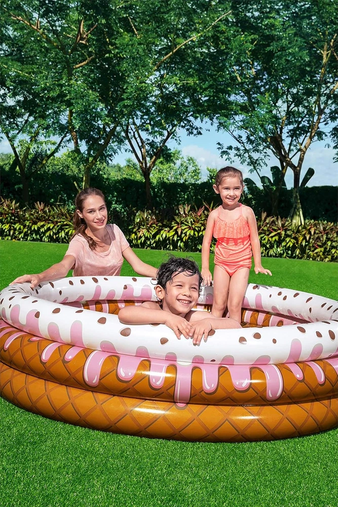 Inflatable Pool Sundae Funday Ice Cream Printed Kids Outdoor Fun Size: 160 x 38 cm 3 Ice Cream Air Rings Durable PVC Water capacity: 390 litres Contents: 1 paddling pool, 1 repair patch Exciting and endless bathing fun for children - with the paddling pool from Bestway! For exercise and lots of fun outdoors. The quality tested Sundae Funday paddling pool is the focus of fun. Three equal sized rings make the ideal pool for little ones. We all scream for ice cream! And your kids will definitely scream with excitement when you set up the Bestway Sundae Funday Pool. The Bestway Sundae Funday Pool is a cool treat for a hot summer day! The children's pool is easy to inflate and easy to store. Product details: • Inflated size: diameter 160 x 38 cm. • Size when uninflated: diameter 150 cm. • Recommended age: 2 years and up. • Water capacity: 390 litres. • Printed as waffle ice cream on the inside and outside. • 3 x identical air rings. • Made from durable vinyl • Includes self-adhesive repair patch Item model number 51144 Item Weight 3.43 pounds Assembly Time 5 minutes Capacity 390 Liters Assembly Required No Color Colour Special Feature Portable, Lightweight, Foldable Material Polyvinyl Chloride (PVC) Occupancy 2 Global Trade Identification Number 06942138968163 Batteries required No Shape Round Frame Material Polyvinyl Chloride (PVC) Age Range (Description) from 2 years Included Components Sundae Funday Paddling Pool 160 x 38 cm Target Audience Unisex-Kids Product Dimensions 62.99"L x 62.99"W x 14.96"H Number of pieces 6 62.99 "h x 62.99 "h x 14.96 "h. Weight: 3.43 lb Shipping from the USA All of our products are shipped from the USA, ensuring quick delivery to your destination. Payment We offer the following payment methods: PayPal, credit card, bank transfer, and eBay's secure payment system. Free Shipping & Free Returns Shipping within the USA is FREE. Additionally, any return is absolutely free for you. Risk-Free Purchase You have the option to return an item within 30 days without any justification. We cover the return shipping costs! Fast Shipping We ship immediately upon receipt of payment. Generally, the package is delivered within 2-3 days in the USA. If it takes longer, we will contact you. Quality and Costs Made in Europe, USA, China No customs fees or additional charges Total satisfaction guarantee Invoice with declared VAT available upon request in .pdf format Feedback Your feedback is very important to us. After you pay for your purchase, you will automatically receive positive feedback from us.