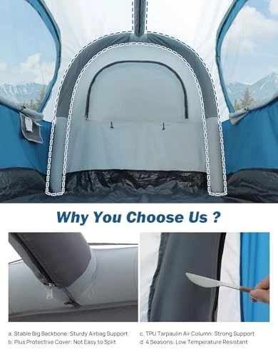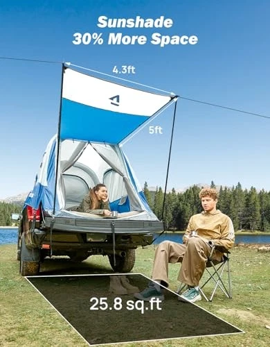 This inflatable truck bed tent is a game-changer for camping! Sets up in just 30 seconds with the included pump—no poles needed. The waterproof roof and awning provide great shade, while three windows keep airflow perfect. Fits most 5.5-6.5 ft truck beds and comfortably sleeps two. Super sturdy and convenient for road trips or outdoor adventures. Love the dual-use design—works as a pickup tent or standalone shelter. Highly recommend for hassle-free camping!