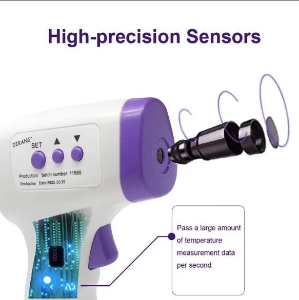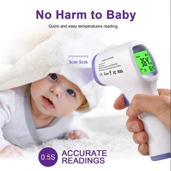 Infrared Thermometer, Digital Infrared Forehead Thermometer Household Body Temperature Meter Non-contact Home Fast Measuring Recommended by medical experts for consistent and reliable performance Designed for all ages - adults, infants, and elders 1-second fast measurement with instant reading Equipped with intelligent light indicator for fever warning Records 35 sets of readings for better tracking Features rapid and accurate measurement in 2 seconds 【FAST AND ACCURATE】With newest high precision infrared sensor which is recommended by medical experts following vigorous clinical tests to confirm its consistency and reliability, Vigorun Temporal Thermometer will perform excellently in instant temperature measurement. 【MULTI-MODE THERMOMETER】The digital fever thermometer is designed for all ages, adults, infants and elders. It not only supports forehead or ear function, but is able to take room/object temperature. ℃ and ℉ are easily switchable. 【BEST CHOICE FOR BABY】1 second fast measurement with instant reading, plus mute mode, just take the temperature without waking your baby up. 【INTELLIGENT LIGHT INDICATOR】Equipped with fever warning system, the thermometer for fever will indicate temperature status with corresponding lights and beeps. 【35 SETS OF MEMORY】 35 sets of readings are recorded for better tracking the changes of body temperature. Features: Rapid and accurate measurement in 2 seconds. Keep personal safe to measure temperature without surface contact. ℃/℉ Switchable and one button operation. Body temperature mode/ surface temperature mode switchable. High body temperature (fever) alert. Specifications: Measuring distance: 2-3.2 inch Automatic shutdown: about 30 seconds Body Mode Range: 34℃-43℃ Surface Mode Range: 0℃-93℃ Package Included: 1 x Body Thermometer 1 x User Manual
