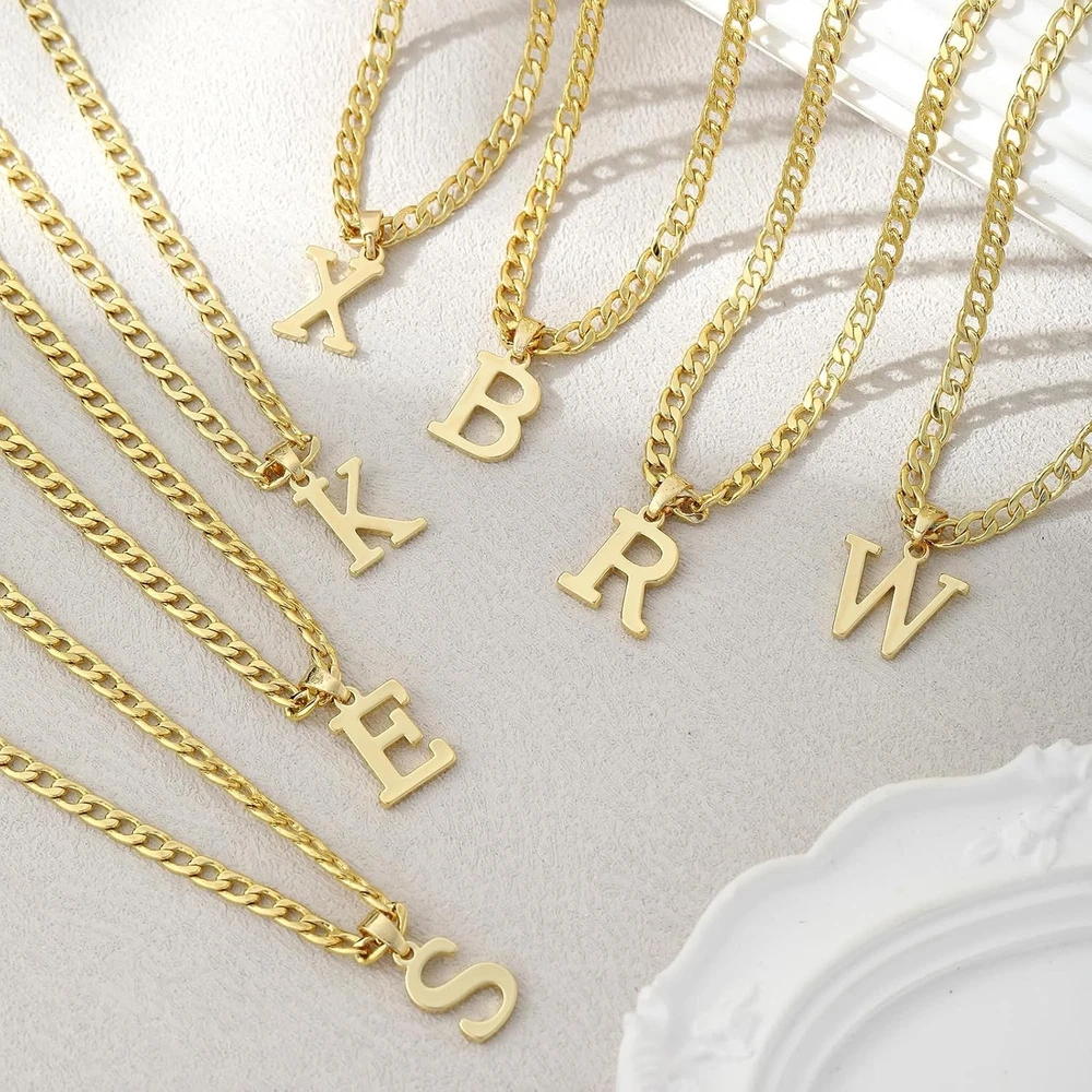 Collar inicial Suweibuke para hombre mujer niño niña, chapado en oro de 18 quilates-J
