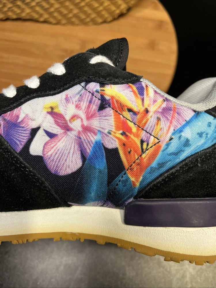 Elevate your sneaker game with these colorful Inkkas Caladium joggers. These low top sneakers feature a lace-up closure and a floral motif pattern that will make any outfit pop. The fabric upper material and lining provide a comfortable and lightweight feel, while the foam insole and rubber outsole offer cushioning and support. These unisex sneakers are perfect for any occasion, whether it's for activewear, casual wear, or even for sports such as walking, tennis, or running. The suede trim and floral pattern make these shoes stand out from the rest.