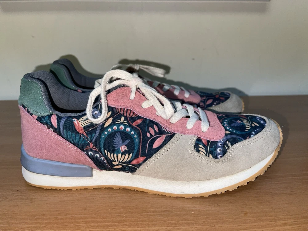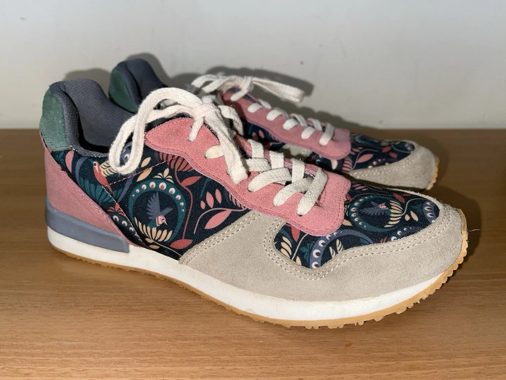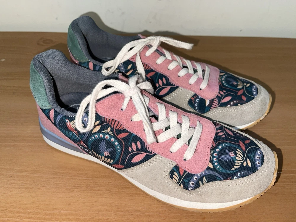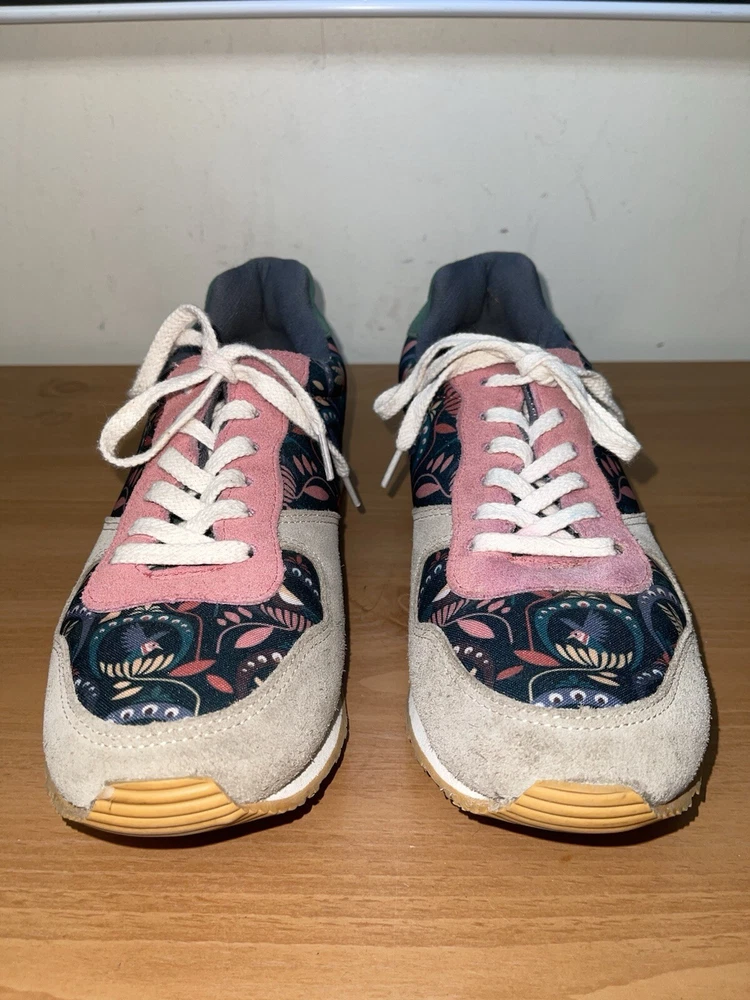 Step into style with these Inkkas Passerine Joggers. The floral pattern and leather upper material give off a bohemian and nature-inspired vibe, perfect for any casual or activewear occasion. The lace-up closure and low top shoe shaft style ensure a comfortable and secure fit, while the leather outsole and insole material provide durability and added comfort. These sneakers are available in US shoe size 10 and EU shoe size 41, making them a perfect fit for any woman. Whether you're heading to a festival or just running errands, these sneakers are the perfect addition to your wardrobe. In great condition. Shipped with USPS ground advantage.