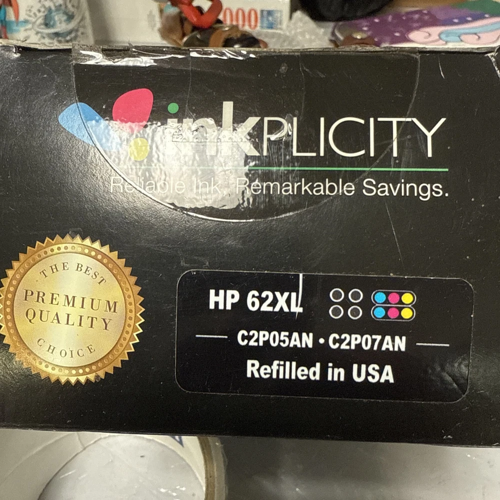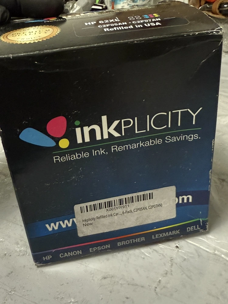 Inkplicity Refilled Ink Cartridge 6-Pack C2P05AN, C2P07AN Brand New USA HP 62XL The best premium quality choice