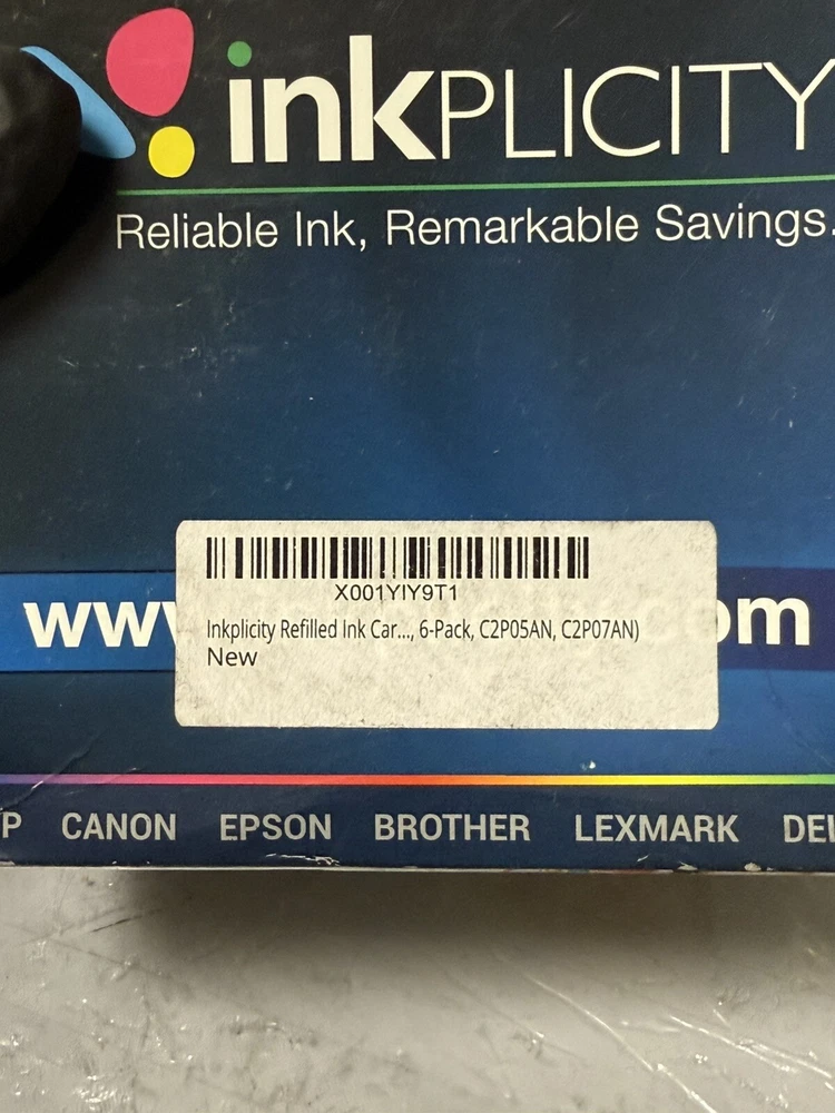 Inkplicity Refilled Ink Cartridge 6-Pack C2P05AN, C2P07AN Brand New USA HP 62XL