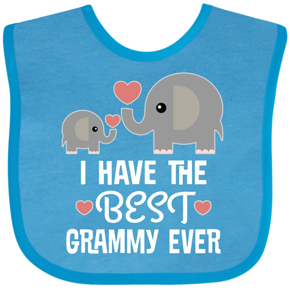 Cute grandkids Baby Bib with slogan that says I have the best Grammy ever and a design of elephant and heart, perfect for a grandson or granddaughter from their grandmother. Our Baby Bib is rated high in convenience and durability and with a variety of fashionable colors, your baby can be trendy. Mix and match to any outfit. 100% cotton ring spun combed heather colors are cotton-poly. Width 7.75", Length 11.75" Baby Bib. Our eBay Store Grandkids Best Grammy Ever Baby Bib Heather and White One Size 14.99 Cute grandkids Baby Bib with slogan that says I have the best Grammy ever and a design of elephant and heart, perfect for a grandson or granddaughter from their grandmother. Our Baby Bib is rated high in convenience and durability and with a variety of fashionable colors, your baby can be trendy. Mix and match to any outfit. 100% cotton ring spun combed heather colors are cotton-poly. Width 7.75", Length 11.75" Baby Bib. Our bibs are combed ring-spun cotton. Reinforced with a hook and loop closure. Created with only the finest and softest of materials that allow the little one to stay clean and comfortable. Printed with the best direct to garment printing technology using only ECO-FRIENDLY ink, creating a safe and comfortable bib. Our bibs are heat cured so the bibs are able to be washed countless of times and not show any fading, cracking, or loss of color. Inktastic, is a family owned business who prints all products in the USA with pride and integrity ensuring the best customer experience from start to finish.