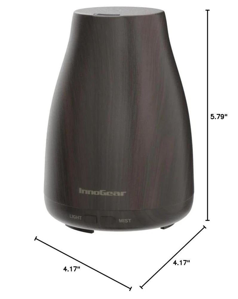 UPC: Does not apply Type: Does not apply Customer Reviews: 4.9/5 Material: Polypropylene (PP) Country of Origin: United States Manufacturer: InnoGear Recommended Uses For Product: Home, Office Brand: InnoGear Product Dimensions: 4.17 x 4.17 x 5.79 inches; 1.3 Pounds Scent: Tea tree, lavender, eucalyptus, lemongrass, peppermint, sweet ora gtin13: Does not apply Color: Dark Wood Grain