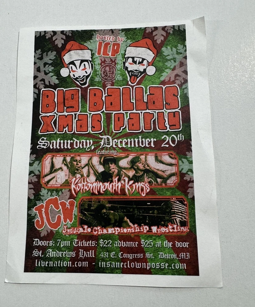 Insane Clown Posse - Box Ballas Xmas Concert Small Flyer 4.25x5.5” ICP KMK party