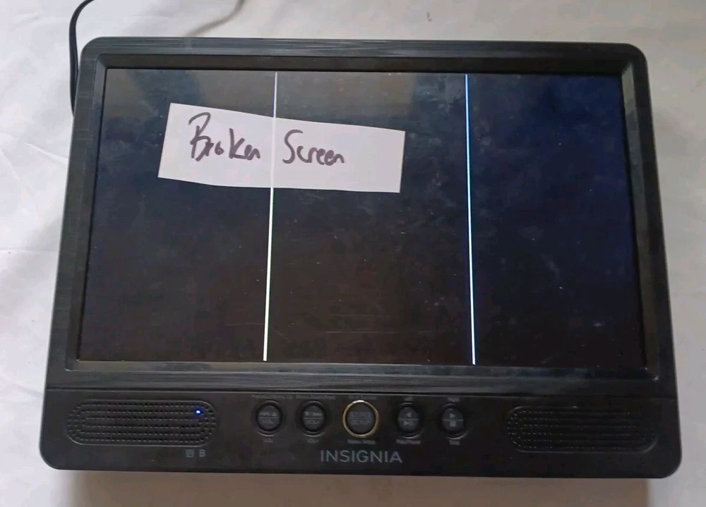 Insignia NS-DD10PDVD19 10 inch Screen Portable DVD Player SOLD AS IS FOR PARTS OR REPAIR Portable DVD players may have the following problem(s) Broken Screen (Internal) Since we have a lot of them, screen damaged varies No Video Dead-Does not power on Won't Read Disc BAD Screen ( Lines on certain spot) ETC Please select your defective problem on top of the page. We only test the unit by powering it on, NO FURTHER TESTING. So it may have other problems/issues. Items do not come with a retail box and no accessories. Please be aware, this item is DEFECTIVE, the item will show sign of usage. Pictures are examples of the item. Free shipping