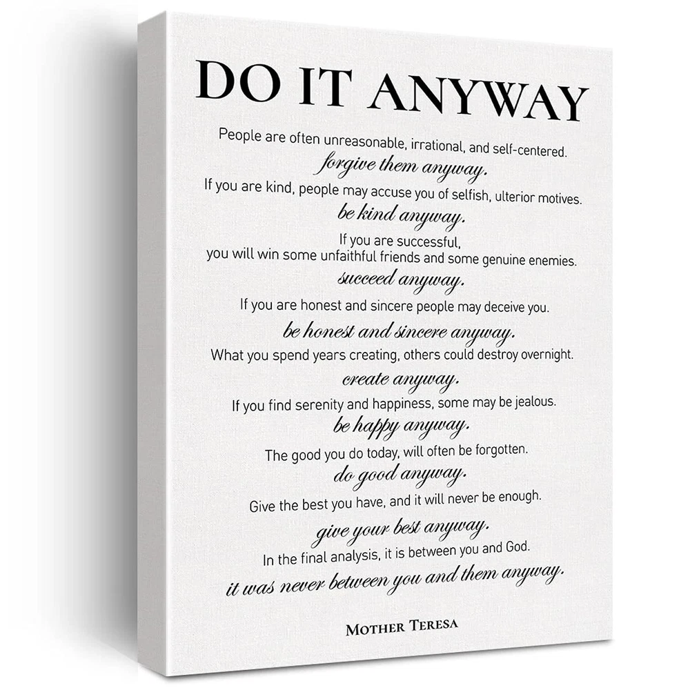 Inspirational Canvas Wall Art Motivational Do It Anyway Quote Canvas Print Po...