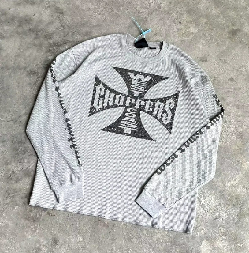 Inspired style WEST COAST CHOPPERS Thermal Grey T-Shirt. Vintage fading, great quality. Fit is slightly oversized/baggy. Size table is at the end of the photos. Please message me for any questions; I accept offers!
