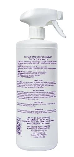 Instant Carpet Spot Remover works on any colorfast carpets, upholstery & materials that can be safely dampened with water. Our amazing surfactant action removes pet accidents, grease, ink, red wine, coffee, blood, rust, food, cosmetics, dirt, grime, and even most old stains. is water based, odor free, non-magnetic, non-flammable, and contains no solvents. No rinsing, vacuuming, or waiting to see results. And Instant Carpet Spot Remover is Safe to Use Around Children and Pets if used as directed! Removes pet accidents, grease, oil, ink, red wine, coffee, blood, rust, food, cosmetics, dirt, and grime Water-based, non-flammable and odor free , solvent, and petroleum free Safe to use around children and pets if used as directed
