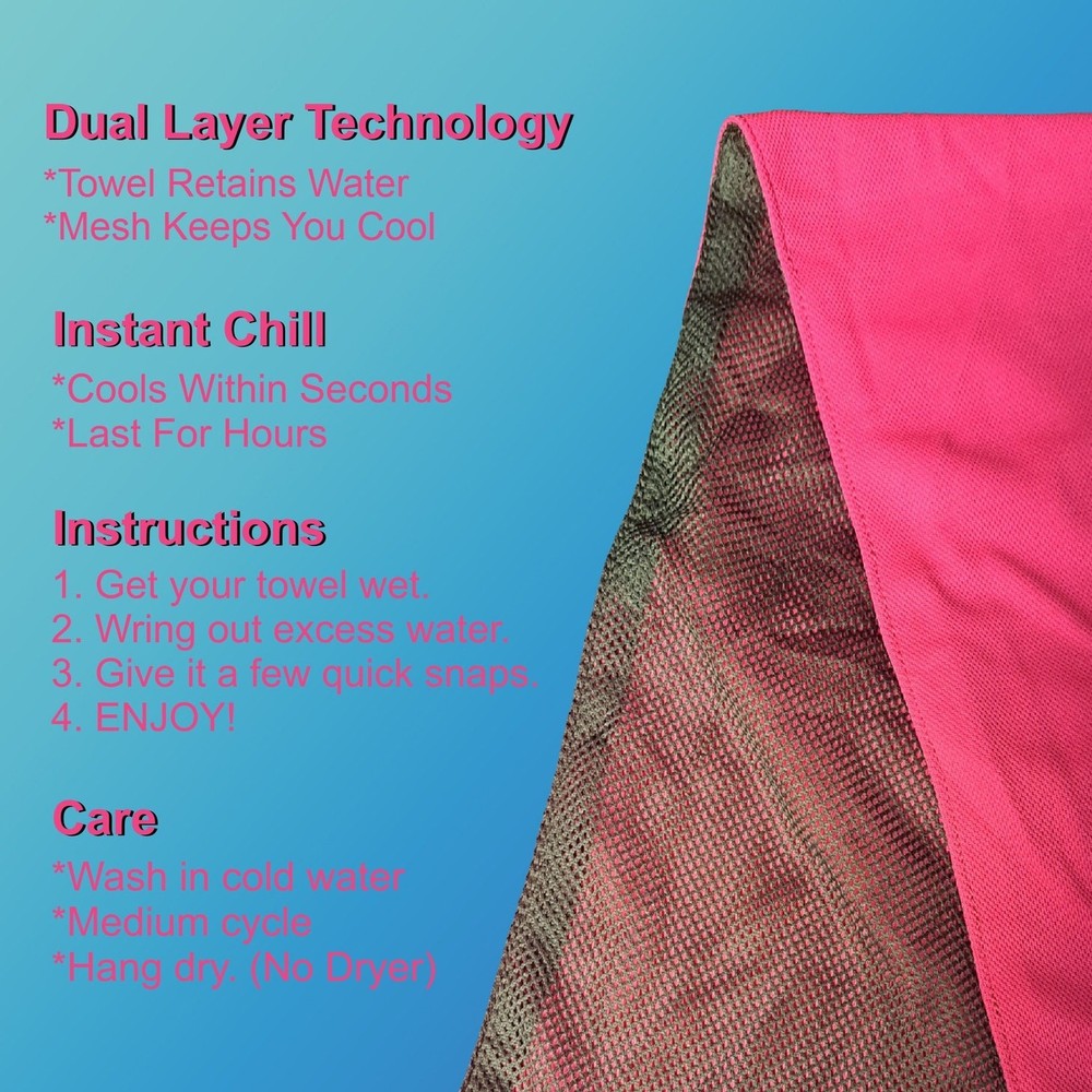 Instant Chill Towel with Dual Layer Snap Cooling Technology 12"x40" Pink & Gray. New. Wear it under your hat, Around your neck, Around your head & More. Will ship fast and with care!
