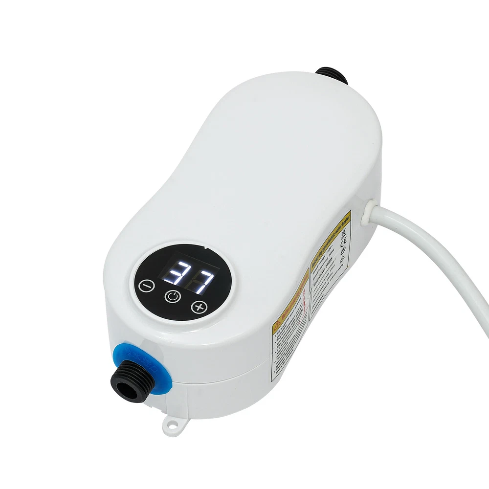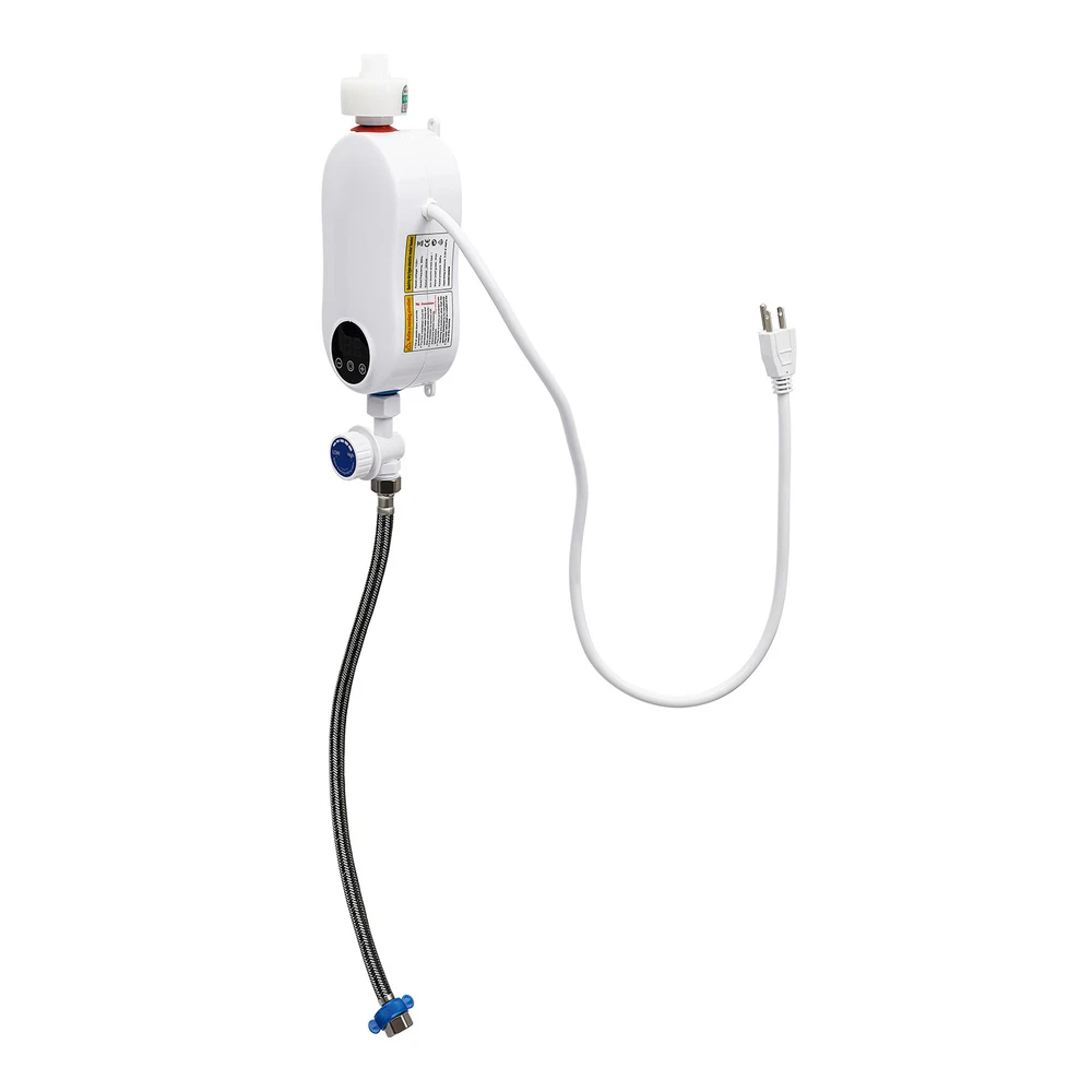 Specifications Color: White Material: ABS, Stainless Steel Shape: Gourd-shaped Style: Mini, Instant Mounting Type: Wall-mounted, Vertical Usage: Indoor Use Features: With Leakage Protection Water Inlet Mode: Lower Water Inlet Heating Method: Instant, Stainless Steel Heating Tube Power Source: Corded Electric Voltage: 110V Frequency: 50Hz Power: 3500W Rated Pressure: 0MPa Operating Pressure: 0.04-0.4MPa Anti-Electric Shock Type: I Waterproof Grade: IPX4 Wire Requirements: >2.5m² Circuit Breaker Switch: >16A Heating Time: 3s Interface: 1/2"NPT Heating Temperature: 20-55℃/68-131℉ Power Cord Length: 0.9m/2.95ft Water Inlet Hose Length: 50cm/19.68inch Water Heater Size: 19*7.5*7.5 cm/7.48*2.95*2.95 inch Package Size: 27*28*12cm/10.6*11.02*4.7inch Net Weight: 1.35kg Instant Electric Bathroom Hot Water Heater With Shower Head White 110V 3500W Without shower, hose, bracket. Description Our water heater uses a stainless steel heating core with 3500w large power, providing you with instant hot water and allowing for a comfortable washing/shower experience. In addition, it adopts multiple protection designs such as leakage protection, dry-heating protection, and grounding protection, ensuring high safety of water use. The mini body and modern appearance make it a great companion for a sink, faucet, or bathroom. Specifications Color: White Material: ABS, Stainless Steel Shape: Gourd-shaped Style: Mini, Instant Mounting Type: Wall-mounted, Vertical Usage: Indoor Use Features: With Leakage Protection Water Inlet Mode: Lower Water Inlet Heating Method: Instant, Stainless Steel Heating Tube Power Source: Corded Electric Voltage: 110V Frequency: 50Hz Power: 3500W Rated Pressure: 0MPa Operating Pressure: 0.04-0.4MPa Anti-Electric Shock Type: I Waterproof Grade: IPX4 Wire Requirements: >2.5m² Circuit Breaker Switch: >16A Heating Time: 3s Interface: 1/2"NPT Heating Temperature: 20-55℃/68-131℉ Power Cord Length: 0.9m/2.95ft Water Inlet Hose Length: 50cm/19.68inch Water Heater Size: 19*7.5*7.5 cm/7.48*2.95*2.95 inch Package Size: 27*28*12cm/10.6*11.02*4.7inch Net Weight: 1.35kg/2.97 lbs Gross Weight: 1.4kg/3.08 lbs Features Premium Material: The instant water heater uses stainless steel and high-quality ABS materials, making it sturdy, wear-resistant, anti-rust, and long-lasting. A Safe Heater: The various protections such as leakage protection, dry-heating protection, anti-electric wall technology, water-electricity isolation, overvoltage protection, thermostatic anti-scalding protection, over-temperature protection, grounding protection, and IPX4 waterproof rate make it safe to use without any worries. Instant Heating: Using a stainless steel heating tube with 3500w high power, this water heater can deliver warm hot water in about 3 seconds without storing water for preheating, which saves time/energy and prevents sediment/scale accumulation. Temperature Controllable: You can control the water temperature (68-131℉) by adjusting the water flow (large/small water flow--low/high temperature) and pressing the+/- keys on the panel, providing hot water that fits four seasons in a year. LED Display: The digital screen displays the water temperature and power, so you can keep track of them and get the desired temperature easier. Anti-scaling Design: It can filter the sediment, rust, and other large particles in the tap water, restore the tap water to the factory state, reduce energy consumption, and avoid damage to the human body and skin. Low Water Pressure Startup: The advanced temperature sensing technology overcomes the difficulty of using water heaters due to low water pressure, making it suitable for residential buildings with water pressure up to 0.04MPa. Cost-effective: The tankless water heater with 98% thermal efficiency can automatically regulate the power according to the water flow and temperature change, saving energy up to 50%. Only when it is used the water can be heated to the required place, eliminating the waste of unused water in the long water pipeline between the central water heater and each faucet. Mini Appearance: This mini wall-mounted white instant water heater with a unique gourd-shaped design and 4.6*2.8*6.3 inches size plays a decorative role and does not occupy much space. Simple Installation: With the equipped accessories, premade fixing screw holes, English manual, and 1/2" standard interfaces, you can install this heater easily. Details Power Cable: The 2.95ft power cable allows for easy installation in your cupboard or under the sink. Touch Button: The new-generation touch button with electronic control has a longer lifespan and good sealing. It resists wet and water and avoids mechanical failure of buttons. Application It is suitable for kitchens, cupboards, bathrooms, daily washing, RVs, bars, schools, hospitals, communities, hair salons, and so on to wash hands, dishes, clothes, and face. You can also take a shower above 0.04MPa water pressure. Package Included 1* Instant Water Heater 1* Water Inlet Hose 1* Flow Regulating Valve 1* English Instruction Other Accessories for Assembly How to Install Fix it through the premade screw holes at the proper position on the wall. Install the water flow regulating valve at the blue electric water inlet under the water heater. Install an electric partition wall at the red water outlet above the water heater. Connect the water inlet hose to the water flow regulating valve. Connect the water inlet. Turn on the water flow regulating valve to ensure that this product does not leak. Plug in the power. Long press the power button for 3 seconds to turn it on. Notes Please verify this unit is the right size for you before buying. The wire is required to be more than 2.5m² and the circuit breaker switch is greater than 16 A. The start-up water pressure of this machine is about 0.04Mpa. If the water flow is significantly too low, it is not recommended to buy, except for users who have added a water booster device. The water temperature 