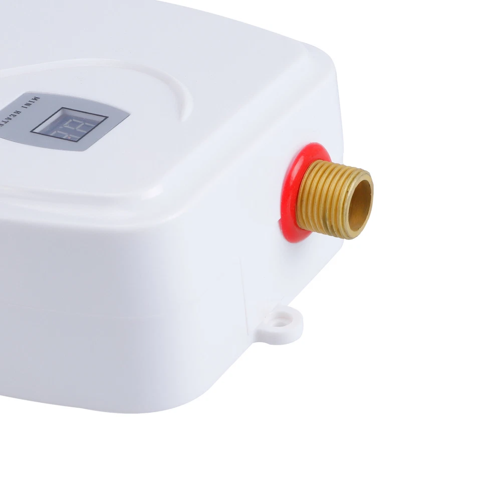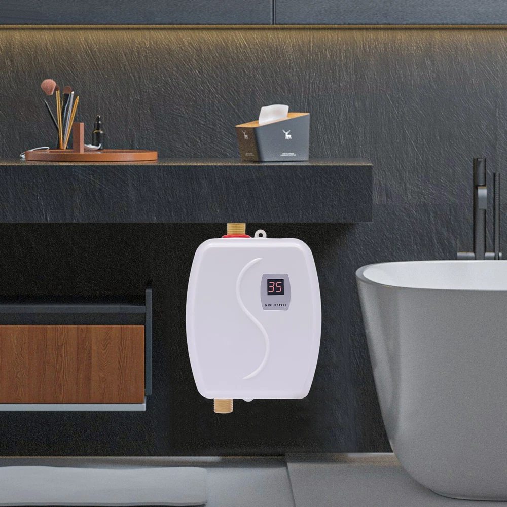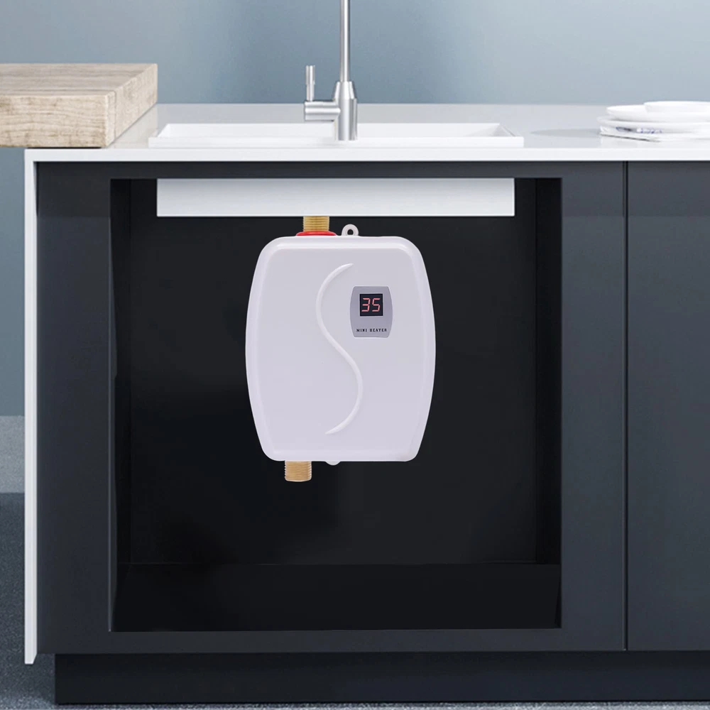 Description Our water heater uses a stainless steel heating core with 3000w large power, providing you with instant and constant hot water and allowing for a comfortable washing experience. In addition, it adopts multiple protection designs such as leakage protection, dry-heating protection, and grounding protection, ensuring high safety of water use. The mini body and modern appearance make it a great companion for a sink and faucet. Key Features Premium Material: The instant water heater uses stainless steel and high-quality ABS materials with injection molding, making it sturdy, wear-resistant, corrosion-resistant, and long-lasting. A Safe Heater: The various protections such as leakage protection, dry-heating protection, anti-electric wall technology, water-electricity isolat Instant Hot Water Heater Electric Tankless On Demand House Sink LCD Description~ Description Our water heater uses a stainless steel heating core with 3000w large power, providing you with instant and constant hot water and allowing for a comfortable washing experience. In addition, it adopts multiple protection designs such as leakage protection, dry-heating protection, and grounding protection, ensuring high safety of water use. The mini body and modern appearance make it a great companion for a sink and faucet. Key Features Premium Material: The instant water heater uses stainless steel and high-quality ABS materials with injection molding, making it sturdy, wear-resistant, corrosion-resistant, and long-lasting. A Safe Heater: The various protections such as leakage protection, dry-heating protection, anti-electric wall technology, water-electricity isolation, sensor fault protection, and grounding protection and IPX4 waterproof rate make it safe to use without any worries. Instant Heating: Using a stainless steel heating core with 3000w large power, this water heater can deliver constant hot water, allowing you to experience the warmth without storing water for preheating, which saves time/energy and prevents sediment/scale accumulation. Temperature Controllable: You can control the water temperature(20-50℃) by adjusting the water flow(large water flow, low temperature; small water flow, high temperature), providing you with hot water that fits four seasons in a year. LED Display: The digital screen displays the water temperature(℃/℉ conversion: Press the on/off key, and then press and hold it for more than 6s to switch ℉. Vice versa.), allowing you to keep track of the water temperature. Anti-scaling Design: It can filter the sediment, rust, and other large particles in the tap water, restore the tap water to the factory state, reduce energy consumption, and avoid damage to the human body and skin. Advanced Technology: Advanced water flow sensing technology is adopted to overcome the difficulty of using water heaters due to low water pressure, making it applicable to high-rise residential buildings with low water pressure. Cost-effective: Only when it is used the water can be heated to the required place, eliminating the waste of unused water in the long water pipeline between the central water heater and each faucet, delivering hot water faster and reducing energy costs. Mini Appearance: This mini wall-mounted white instant water heater of 4.6*2.8*6.3 inches size plays a decorative role and does not occupy much space. Easy to Install: With the equipped accessories, premade fixing screw holes, English manual, and 1/2 inch standard interface, you can install this heater easily. Easy to Clean: The smooth surface allows you to wipe the dirt away with a wet cloth. Protective Package: To prevent the product from being damaged and bumped during transportation, we packed it with pearl cotton to protect your products to the maximum extent possible. Details Power Cable: The 3.28ft power cable allows for easy installation in a wider range. Brass Interfaces: The water inlet and outlet adopts brass material, making them corrosion-resistant, stable, anti-rust, and high-temperature-resistant. Touch Button: The new-generation touch button with electronic control has a longer lifespan and good sealing. It resists wet and watery environments and avoids mechanical failure of buttons. Application It is suitable for kitchen water, daily washing, bars, schools, hospitals, communities, hair salons, and so on to wash hands, dishes, and face. Specifications Model: XY-FC Color: White Material: Stainless Steel, ABS, Brass Process: ABS Particle Injection Molding Shape: Rectangular Style: Mini, Instant Mounting Type: Wall-mounted, Vertical Usage: Indoor Use Features: With Leakage Protection Water Inlet Mode: Lower Water Inlet Heating Method: Instant, Stainless Steel Heating Core Power Source: Corded Electric Plug: US Standard Voltage:110V Frequency: 50-60Hz Power: 3000W Water Pressure: 0.04-1.2MPa Anti-Electric Shock Type: I Waterproof Grade: IPX4 Wire Requirements: >2.5m² Circuit Breaker Switch: >32A Heating Time: About 5s Interface: 1/2"NPT Interface Outer Diameter: 20mm/0.78inch Heating Temperature: 20-50℃/68-122℉ Power Cord Length: 1m/3.28ft Total Height(Interfaces Included): 19.5cm/7.7inch Water Heater Size: 11.6*7*16cm/4.6*2.8*6.3inch Package Size: 23.5*19*10cm/9.25*7.48*3.9inch Net Weight: 1kg/2.2lbs Gross Weight: 1.1kg/2.4lbs Package Included 1* Instant Water Heater 1* English Manual Other Accessories for Assembly. The unit is mainly for sinks, not for shower purposes. Notes You can only control the water temperature by adjusting the water flow(large water flow, low temperature; small water flow, high temperature) The unit is mainly for sinks, not for purposes. Please verify this unit is the right size for you before buying. The wire is required to be more than 2.5m² and the circuit breaker switch is greater than 32 A. You need to prepare a water pipe, valve, and other excluded accessories yourself. It must be installed vertically upward instead of horizontally, sideways, or flatly. Please properly ground the gro