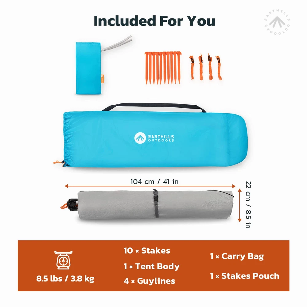 UPC: Does not apply Package Dimensions LxWxH: 40.0x5.98x5.98 Inches Weight: 8.98 Pounds Brand: Easthills Outdoors gtin13: Does not apply Color: Dark Shelter - Pacific Blue Type: Does not apply