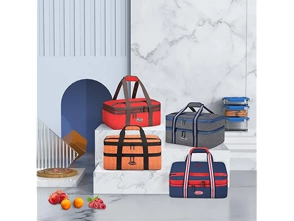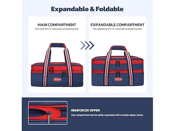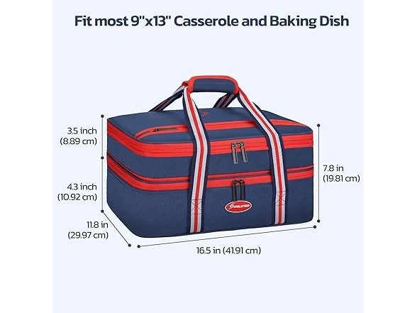 Maelstrom Insulated Casserole Carrier For Hot or Cold Food,Expandable Lasagna Lugger Tote,Collapsible Leakproof Large Food Buds,Blue Condition: New Features This is a collapsible and expandable double-layer casserole carriers for hot or cold food. Food-grade double-sided, high-strength aluminum foil that is odorless, smooth, tear-resistant, and cleanable. The double-layer design effectively separates hot and cold food, maintain good insulation to keep hot food warm and cold food cool.the entire maelstrom expandable lasagna lugger is filled with 6mm of epe foam( accurately measured), which is ultra-soft, safe, and insulates extremely well. Exterior surfaces of the lasagna lugger tote are made of rip-stop 600d oxford fabric plus one layer of pvc coating to provide long-lasting durability while adding extra insulation. As insulated bags for food transport they are excellent for taking dishes to a friend’s house without reheating, maintaining the best taste of the food. Maelstrom lasagna lugger insulated food containers measures 16.4*10.9*7.8 and fits most 9” X 13”/22.8 x 33 cm casserole and baking dishes. Thank you. MAELSTROM INSULATED FOOD CARRIER - This is a collapsible and expandable double-layer casserole carriers for hot or cold food. Food-grade double-sided, high-strength aluminum foil that is odorless, smooth, tear-resistant, and cleanable. The double-layer design effectively separates hot and cold food, maintain good insulation to keep hot food warm and cold food cool WELL INSULATED & DURABLE - The entire Maelstrom expandable lasagna lugger is filled with 6mm of EPE foam which is ultra-soft, safe, and insulates extremely well. Exterior surfaces of the lasagna lugger tote are made of rip-stop 600D Oxford fabric plus one layer of PVC coating to provide long-lasting durability while adding extra insulation. As insulated bags for food transport they are excellent for taking dishes to a friend’s house without reheating, maintaining the best taste of the food EXPANDABLE & FOLDABLE - Maelstrom Lasagna Lugger insulated food containers measures 16.410.97.8 inch and fits most 9” x 13”/22.8 x 33 cm casserole and baking dishes. The top compartment is easily expanded with a simple zipper action. When fully expanded the height increases by 2.5 inches, Or it can be easily collapses flat to 2 inches to stow in your trunk or under a car seat. It’s a casserole dish carrier that’s convenient for travel MULTIFUNCTION DESIGN - The Maelstrom Lasagna Lugger has elastic straps sewn on the top flap to hold knives, forks, and spoons. For quick and convenient access to get the needed items, simply get zip open the main zipper pocket. A large zippered pocket on the outside is perfect for carrying additional accessories like plates, wine openers, kitchen linens, kitchen utensils MULTI-USE - The reinforced dual-zippers are sturdy and durable with reverse stitching technique to hide zipper teeth and rectangular hardware pull tails that make it easy to open and close. The high-density webbing and a padded tear-resistant handle are thoroughly stitched together, comfortable to carry around whether you’re visiting relatives or friends or going out for a picnic, camping, beach, potluck, or for holiday parties Specs In the Box: (1) Maelstrom Insulated Casserole Carrier For Hot or Cold Food,Expandable Lasagna Lugger Tote,Collapsible Leakproof Large Food Buds,Blue