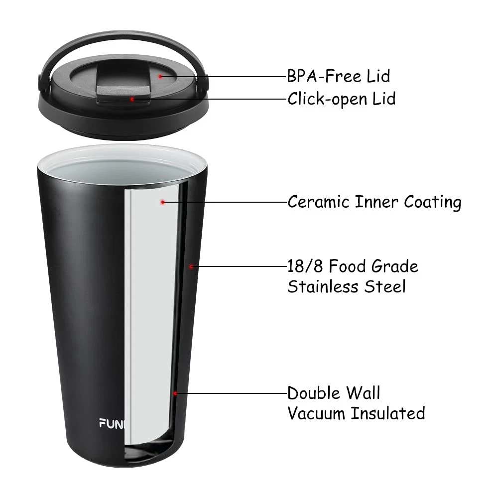 About : Our brand focuses on the thermal insulation series, providing consumers with full-scene, high-quality and differentiated products that are built to last. The thermal insulation series includes lunch boxes, food jar, coffee mug, sports water bottle and other products, to covers consumers' daily thermal insulation needs. Why Choose Us: 1.WIDE USE:18oz capacity is ideal for outdoor, travel, party, coffee, water, wine, beverages, milk, etc 2. Each tumbler includes a sliding lid, which is not only strong and durable but also prevents overflow. 3.non-slip silicone Bottom: The bottom of the non-slip mat can ensure that you do not have to worry about slipping when placed on the table, countertop. 4.Hassle-Free Service: We run a fast, free, and accessible service. We are responsible for all the products we sell; please contact us If you have any product questions. Our after-sale team will respond to your questions and complaints in the earliest opportunities PACKAGE INCLUDE: 1 x 18oz Tumbler 1 x Tumbler Lid 1 x Product packaging box CARE TIPS: 1. Please do not freeze or microwave. 2. Hand wash the tumbler before first use and after each use. 3. Please do not turn the cup upside down to prevent the water from pouring out. True Taste Ceramic Coating:Your beverages should taste as you expect. Unlike stainless steel, our ceramic interior coating keeps your drinks pure and free from lingering odors and oils. You will not have to worry about that unpleasant metal taste in your mouth. We only use the best, corrosion-free materials. The mug is safe for coffee, tea, wine, milk and more. Longer Insulation Time:The coffee mug’s double-walled vacuum insulation can keep beverages hot or cold for hours. It’s perfect for the office, travel, camping, and parties. Note:Heat retention after 4 hours is 131 degree Fahrenheit. Rating is based on water at a starting temperature of 203 degree Fahrenheit at a room temperature of 77 degree Fahrenheit. Top Quality Material:This double-walled, vacuum-sealed coffee mug is copper plated with thick, professional-grade stainless steel. The lid is made of BPA-free plastic which is durable and food-safe. Fits Most Cup Holders:The coffee mug has a handle and is easy to carry. And yet, it still fits in almost any cup holder for secure transport. This makes it an ideal mug to use for commuting. Leakproof Design: The lid is leakproof even when flipped upside down. You can put it in your car, bag, and backpack without fear of leakage. Note:After filling hot water, leave the flip-lid open for seconds to release internal steam pressure, doing so to ensure no leakage.Note:Not Available For Microwave. Hassle-Free Service: We run a fast, free, and accessible service. We are responsible for all the products we sell; please contact us If you have any product questions. Our after-sale team will respond to your questions and complaints in the earliest opportunities.