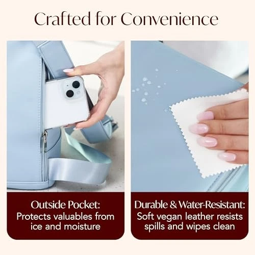 Return Policy Fast Delivery Trusted seller Insulated Cooler Backpack with 2 Stainless Steel Wine Tumblers – Leakproof & Spillproof Stylish Vegan Leather Picnic Cooler Bag – Lightweight & Portable – Holds 24 Cans or 6 Wine Bottles – Blue Product Description ALL-DAY INSULATION: This stylish and functional insulated backpack keeps drinks cold for hours thanks to the insulated interior and leakproof lining; Whether you're at the beach, a picnic, or a festival, you only need to add ice once for refreshing beverages all day long ELEGANT & CONVENIENT: Crafted with soft, durable vegan leather, this backpack cooler for women and men blends fashion and function––because style matters just as much as performance; Its sleek exterior resists stains and easily wipes clean while the outside pocket secures essentials and valuables away from any ice and moisture TUMBLERS INCLUDED FOR ON-THE-GO TOASTS: Elevate your experience with the travel cooler bag’s two matching wine tumblers—perfect for sipping poolside, lakeside, or at a scenic overlook; Durable and reusable, they’re included to enhance moments and create shared memories with friends and family ROOMY YET COMFORTABLE TO CARRY: Spacious yet compact, this travel cooler with strap offers just the right amount of space, holding up to 24 cans or 6 wine bottles; The insulated lunch backpack features an adjustable design for a custom fit and padded straps to enhance your comfort while on the go GIFT-READY FOR SOCIAL ADVENTURES: Packed in a cotton storage bag, this soft cooler back pack makes the perfect gift for social butterflies, party hosts, and modern day explorers; With three chic colors available––Beige, Cream, and Light Blue––the carry cooler complements any style or outfit Shipping Returns Payment Shipping Shipping is FREE to all addresses other than APO/PO boxes in the lower 48 states. All our stock ships from US-based warehouses. Shipped via USPS or UPS (depending on location and package weight) Unless stated otherwise, all orders will ship within 24-72 hours of your payment being processed. Check our feedback to see the great reviews of FAST shipping we offer. Returns Seller does not accept returns Payment We currently accept payment via eBay managed payments only. Once payment is cleared, we will dispatch your shipment within 1-3 business days. Please refer to the "Shipping" tab for more information regarding shipping speed to your destination.