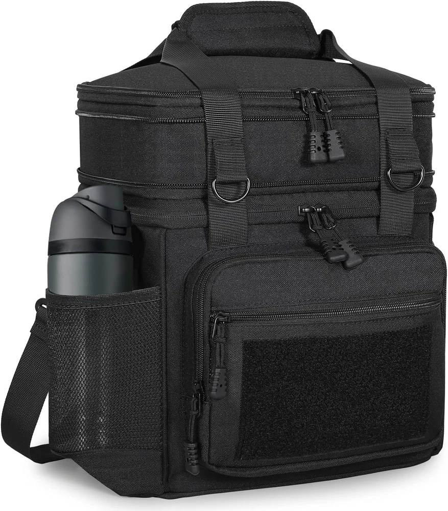 Large Capacity with Expandable Design: Fits 20 Cans of soda(350ml). Dual Compartments for different uses, the top compartment of the women lunch box is expandable, increasing the capacity by 4L. Normal size with 12L. Handy to use for work, outing, picnic, camping, road trip, and so on Better Insulation Performance: 6mm thick insulation liner helps keep your food cold or warm at the right temperature for up to 8 hours. Foods that need to be kept separate from wet and dry can be stored in the top and bottom compartments Water-Resistant & Leakproof: The outer fabric is made from durable water-resistant and wear-resistant material, protecting your lunch and stuff inside from little water or rain. Our large lunch bags can bear weight up to 10kg. Thickened lining and the one-peace heat-pressed process ensure against leaks and are easy to clean Tactical Style & Multi-Use: A large velcro patch on the front you can add a patch to personalize your lunchbox. 5 Versatile pockets on the side designed for storing cellphone, portable charger, wallet, keys, card, tissue, bottle, drinks, and more. 2 Metal Hanging Buckle for attaching keys, cosmetic and other small essentials Versatile Lunch Box: Well-padded shoulder strap and sturdy handles make the large lunch box easy to transport even when fully loaded. GLENKEY heavy duty lunch cooler bag is a spacious, comfortable lunch cooler Product Description MULTICOLORS Customer Reviews 4.6 out of 5 stars 1,106 4.6 out of 5 stars 3,482 4.6 out of 5 stars 3,482 4.6 out of 5 stars 3,482 4.6 out of 5 stars 3,482 4.6 out of 5 stars 3,482 4.6 out of 5 stars 1,106 Price $26.99 $ 26 . 99 $24.99 $ 24 . 99 $25.99 $ 25 . 99 $29.99 $ 29 . 99 $29.99 $ 29 . 99 $28.99 $ 28 . 99 $25.64 $ 25 . 64 Capacity 16L 16L 16L 16L 16L 16L 16L Leakproof Yes Yes Yes Yes Yes Yes Yes Insulated Yes Yes Yes Yes Yes Yes Yes Shoulder strap Yes Yes Yes Yes Yes Yes Yes Design for Camping/Beach/Outdoor Work/Picnic/Hiking Hiking/Beach/Work Picnic/Beach/BBQ Outdoor/Picnic/Beach Work/Picnic/Hiking Hiking/Beach/Trips