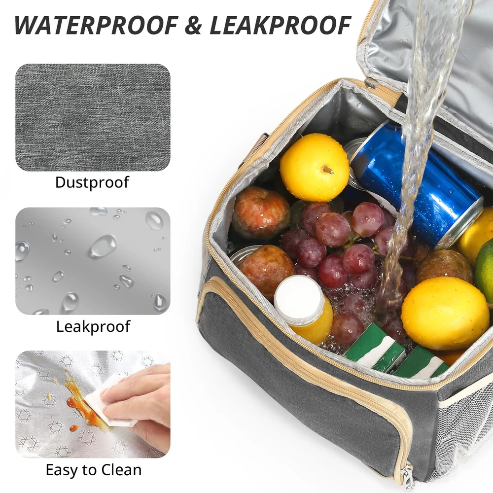 Insulated Lunch Box for Men Women Double Deck Lunch Bag for Men Waterproof Freezable Lunch Cooler Bag for Office Work Picnic with Adjustable Shoulder Strap Grey 🛒 Product Overview 💼 Features 【16L LARGE CAPACITY】: With dimensions of 10.6x7.9x11.8 inches, this large lunch box for men heavy duty has ample space for multiple meals or up to 24 cola cans. Its dual-deck design lets you separate hot and cold foods, ideal for busy men and women who want to keep their meals, beer, drinks, and fruits organized and balanced throughout the day. The front zip pocket and side mesh pockets of mens lunchbox for work offer additional storage space for a water bottle, phone charger, utensils, and more. 【PORTABLE LUNCH BOX】: Take your meals, snackes and drinks anywhere effortlessly with Insulated Lunch Box for men. Featuring an adjustable shoulder strap and a soft PU leather handle, you can carry it as a messenger bag, shoulder bag, or handbag. Perfect for work, office, picnics,camping, hicking, beach, and short trips. 【SUOERIOR INSULATION】:Advanced 6mm PEVA foam of lunch box for adults keeps your food hot for 6 hours or cold for 10 hours, so your food stay fresh and delicious all day, whether you're at work or on a picnic. The large lunch bags for men keeps food and drinks cool all day if you put an icepack in it. 【WATERPROOF & LEAKPROOF】: Never worry about spills again. The meal prep lunch bag features a 100% waterproof and leakproof interior lining, preventing any messes in your bag or car. The heat-sealed lining of cooler bag for women is easy to wipe clean with a cloth, maintaining hygiene and convenience. 【VERSATILE AND PRACTICAL】: The wide opening and two-way zipper of the construction lunch box for men allow for easy access. Perfect for various occasions, the lunch box for women men is great for work, picnics,family travel, camping, making it a versatile companion for your daily adventures. Perfect gifts for husband, wife, boyfriend, girlfriend, father, mother, birthdays, Christmas, and more! 🎯 Customer Favorites Our customers love this product because of its unmatched quality, innovative design, and outstanding value. Join them in making a smart purchase! 💳 Payment Policy We accept payments through PayPal and all major credit cards for a secure and convenient transaction experience. In case of any issues with the payment process, don’t hesitate to contact us through eBay messages, and we’ll be happy to assist you. 🚚 Delivery & Shipping We ship directly to your verified address on eBay. Orders are processed within 1-2 business days. Standard shipping typically takes 3-7 business days. Please contact us if there are any issues. 🔄 Return Policy Enjoy a 30-day return policy. Items must be returned in their original packaging and condition. Refunds will be issued promptly upon receipt of the return. 💬 Contact Us Have questions? Reach out to us via eBay messages. We're here to help you with any inquiries!