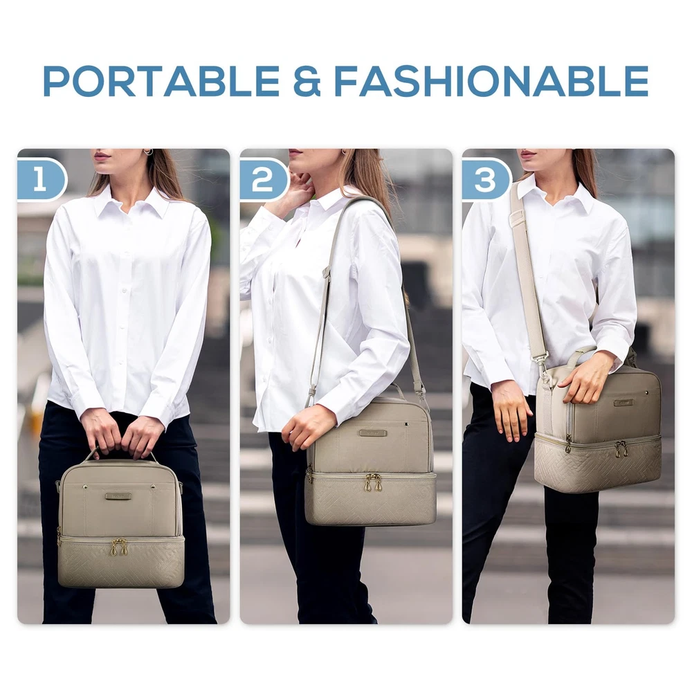 Exclusive Offers Await! Welcome to our stores! Satisfaction is what we guarantee. Lunch Bag Women Double Deck Lunch Box Insulated Lunch Cooler for Women Men Work, Camel Product Overview Key Features Double Deck Lunch Cooler: Two insulated sections allow to pack of hot food separated from cold food, prevent food from being piled up and squeezed. The top section is perfect for non-leaking items like fruit, snack; Bottom “cold” section is insulated with soft PEVA liner, perfect for cooling drinks, lunch, etc Long-Term Insulation: The lining of lunch bag is made of PEVA material, interior padded with 5mm EPE foam for keeping food stay cold/warm/fresh for up to 12 hours! Easy to wipe clean. The exterior of lunch bag is constructed out of Water repellent material for durability and water repellent Large Capacity: Overall capacity is 10.6L. Top interior dimension 10.25" x 6.3" x 5.1”, bottom interior dimension 10.25" x 6.3" x 4.3”, spacy enough to store 9 cans of cola (355ml) or your lunch such as sandwich, salad, drinks, and fruits, etc., great for packing all of your food and snacks for the entire day Removable Separator Design & Multiple Pockets: 1 Removable Separator of bottom compartment can fix the position of the food and prevent the items from shifting. 2 main storage sections; 1 front pocket for small stuff; 1 mesh pocket inside top compartment for storing utensils or ice packs Portable & Versatility: Equipped with an adjustable and detachable shoulder strap with padding and strong grab handle for giving you two options to comfortably carry the bag. The lunch bag weighs only 1lb, which is a perfect lunch bag for women men for carrying lunch to office, picnic, park, and outdoors Payment Information ★ Secure payments through eBay. ★ We accept PayPal and all major credit cards. ★ Immediate payment required upon purchase. ★ For any payment issues, please contact our support team. Shipping Information ★ Orders are shipped to the address provided during checkout. Please verify your address. ★ We process orders within 1 business day (excluding weekends and holidays). ★ Standard delivery time is 3-5 business days. ★ We use trusted carriers like UPS, FedEx, and USPS. ★ Shipping is only available within the contiguous United States. No shipping to Alaska, Hawaii, Puerto Rico, or PO Boxes. ★ If there are any shipping delays, please contact us for support. Return Policy ★ We offer a 30-day return policy. ★ If you are not satisfied with your purchase, you can return it within 30 days for a full refund. ★ Please contact us to obtain the return address before sending back any items. ★ Items must be returned in their original condition and packaging.