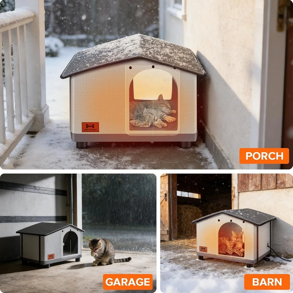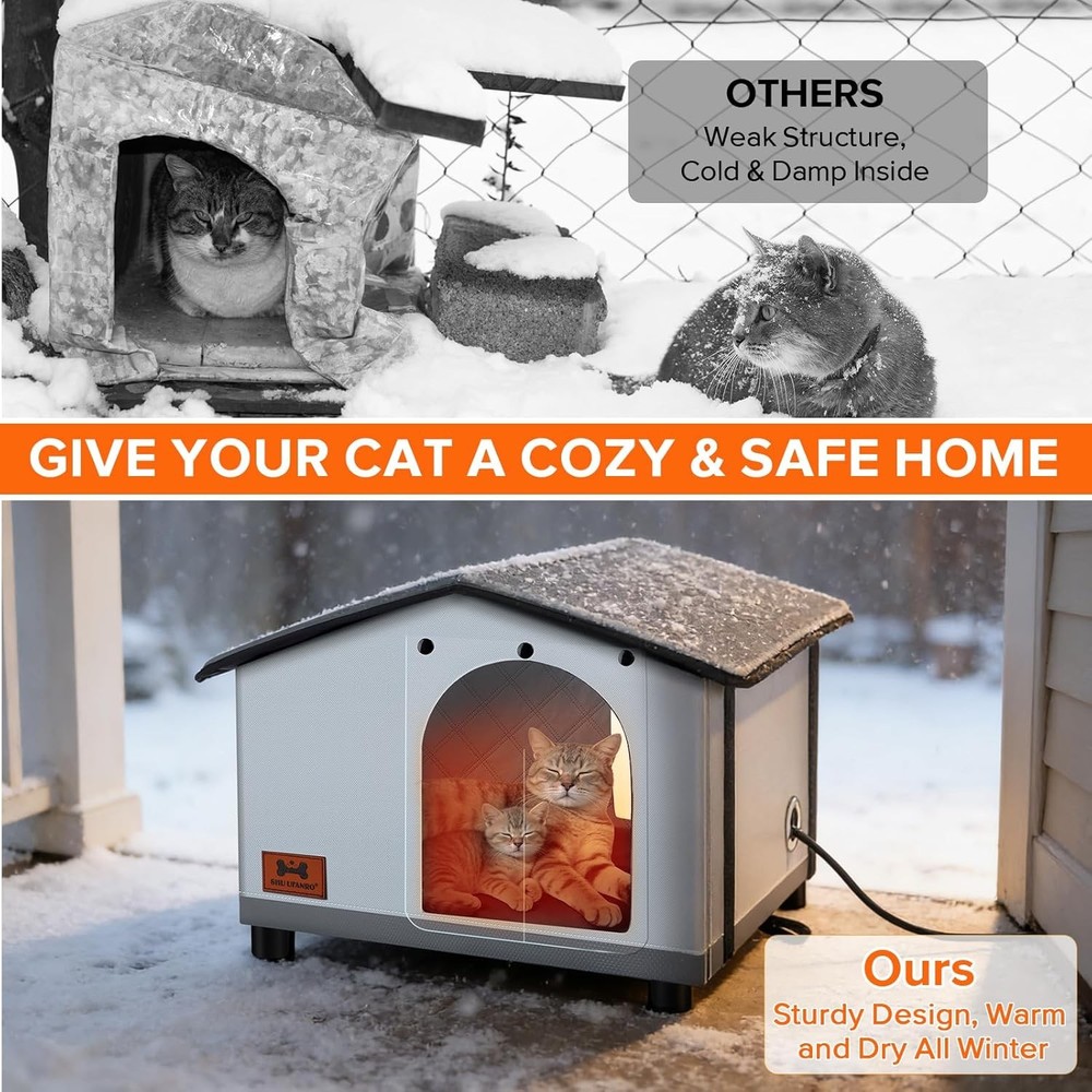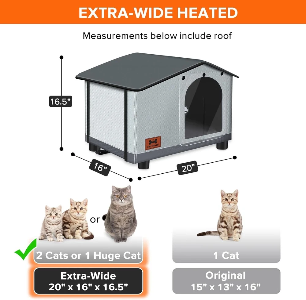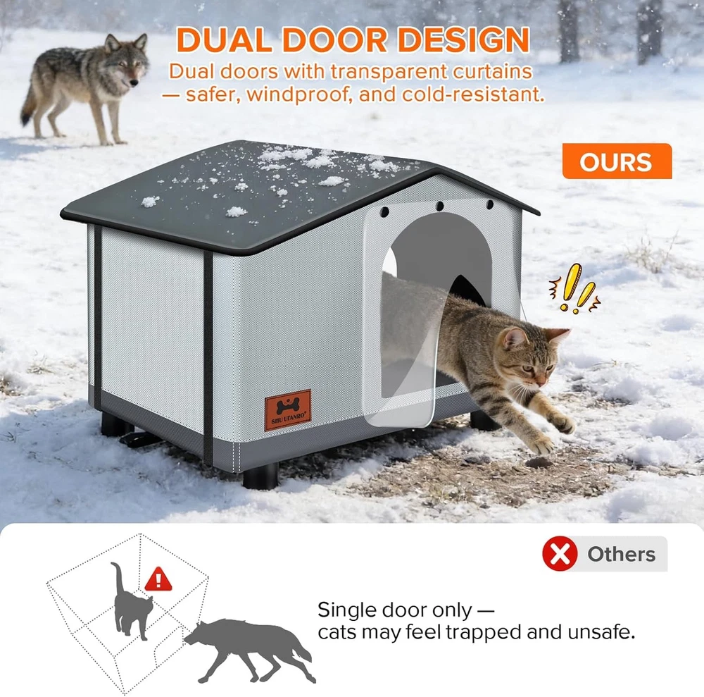 Menu Other Items Feedbacks About Us Contact Us Add To Favorites Insulated Heated Cat House Indoor/Outdoor 20"x17"x16" Heated Outdoor Cat House – Waterproof & Insulated Winter Shelter Fully Waterproof & Weatherproof Design This outdoor cat house features an upgraded waterproof roof, sealed walls, and a clear PVC door flap to block rain, snow, and wind. A waterproof-coated base prevents ground moisture while adding insulation, keeping cats dry, warm, and protected in all weather conditions. Superior Insulation & Heat Retention Built with high-quality insulated materials , this heated outdoor cat house provides reliable warmth even in harsh winter conditions. Windproof door flaps and a side-door layout reduce cold drafts, while the insulated structure helps circulate and retain heat for maximum comfort. Dual Escape Doors for Safety Designed with two escape exits , this feral cat shelter prevents cats from being cornered by predators. Each door includes a removable transparent flap that blocks cold air while maintaining visibility, allowing cats to stay alert and secure. Sturdy, Durable Construction Made from thick PP board with a reinforced A-frame roof , this insulated outdoor cat house resists rain and snow buildup while ensuring long-term durability. The structure can be staked to the ground for extra stability during storms and strong winds. Safe & Cozy Heated Pad Included Includes a thermostatic heating pad that maintains a steady 122°F to keep cats warm without overheating. The pad features a soft, machine-washable cover, UL-tested heating wire , and a waterproof, flame-retardant design for maximum safety. An 8.2 ft power cord allows flexible outdoor placement. Spacious & Versatile Outdoor Shelter Measuring 20 x 17 x 16 inches , this large outdoor cat house comfortably fits large cats or multiple cats. Ideal for feral cats, strays, and outdoor pets , it can be placed in garages, patios, porches, barns, or backyards to provide a warm, private refuge all winter long. Item Specification Item model number PTPM007-GY Age Range Description cats,dogs Warranty Description 1 year Item Dimensions LxWxH 20 x 17 x 17 inches Color Grey Product Dimensions 20"D x 17"W x 16"H Material With Elevated Material Type With Elevated Style L(20"x17"x16") Specific Uses for Product Indoor, Outdoor Item Weight 7.6 Pounds Target Audience Keyword Cats Model Name PTPM007-GY Item Package Dimensions L x W x H 20 x 17.4 x 4.53 inches Included Components Cat House, Heating Pad Dimensions Shipping Returns Additional Info Product Dimensions: 17.4 inches x 20.0 inches x 4.53 inches. Weight: 7.6 lb Fast shipping is very important for us. Our standard shipping service is FREE. Your order will be shipped within 1-3 business days upon full payment received. Most items are delivered within 3-5 business days, however, please allow 3-10 business days. We are shipping only to USA. We only ship to the confirmed Paypal address. We reserve the right to cancel any order for any reason at any time. We are not responsible for undeliverable addresses. We offer a 30 day return policy from checkout winning date. Your satisfaction is guaranteed! If for any reason you are unhappy with your item, just return it within 30 days for a full refund, minus shipping cost. Please contact us prior to initiating a return so that we can issue you a refund authorization. Items defective upon receipt must be packaged in their retail packaging as if new and returned with a detailed description of the problem. Return shipping fees are not refundable. We reserve the right to decline any returns if the above guidelines are not followed. All of our items, unless otherwise stated, will only run on 120 volts. Please check to make sure your country complies with these specifications. If you have a problem or question regarding your transaction please contact us before leaving any type of feedback. We will work with you to resolve any problem you may have.