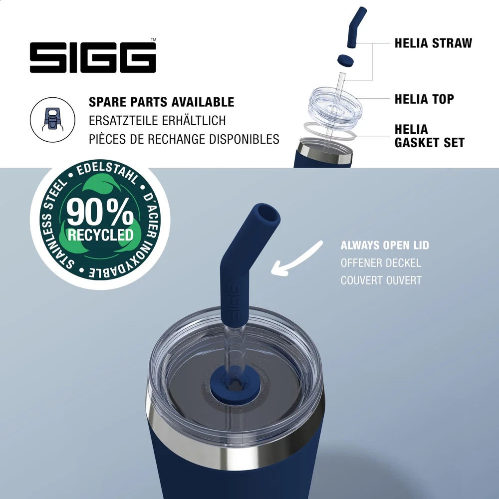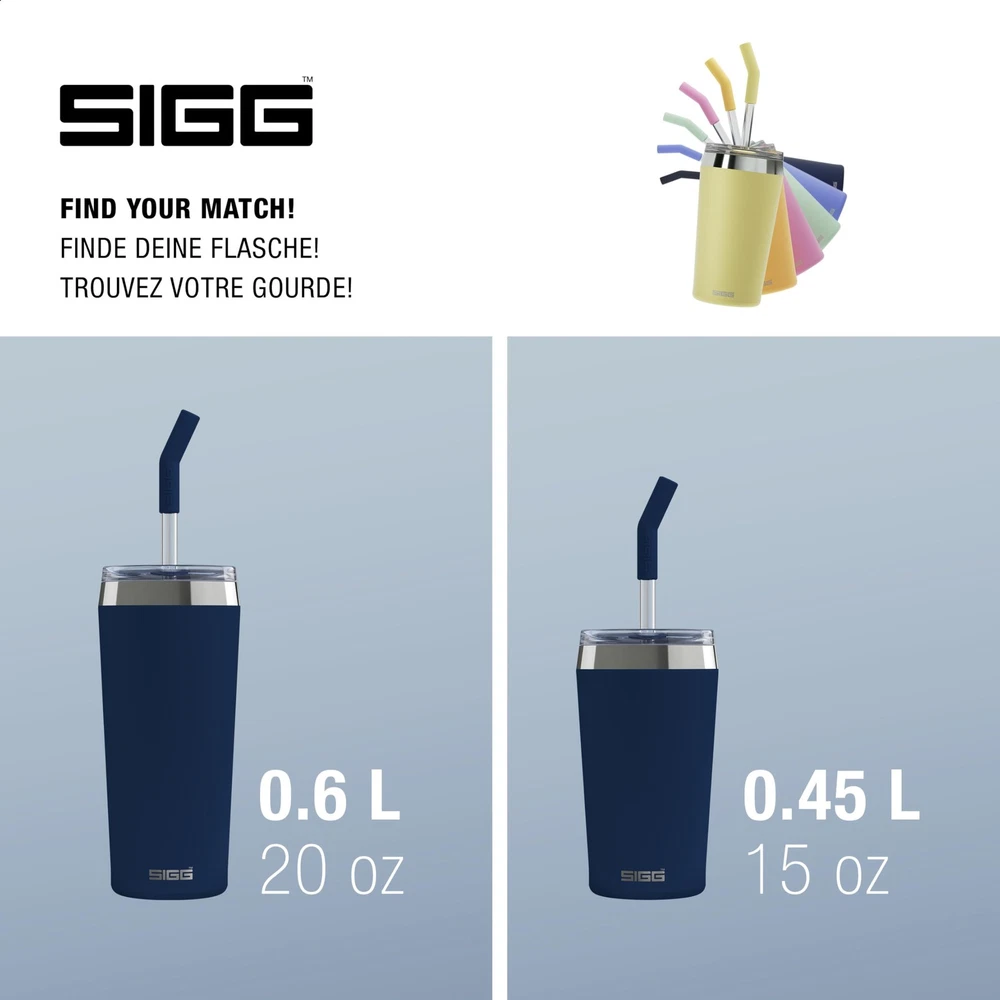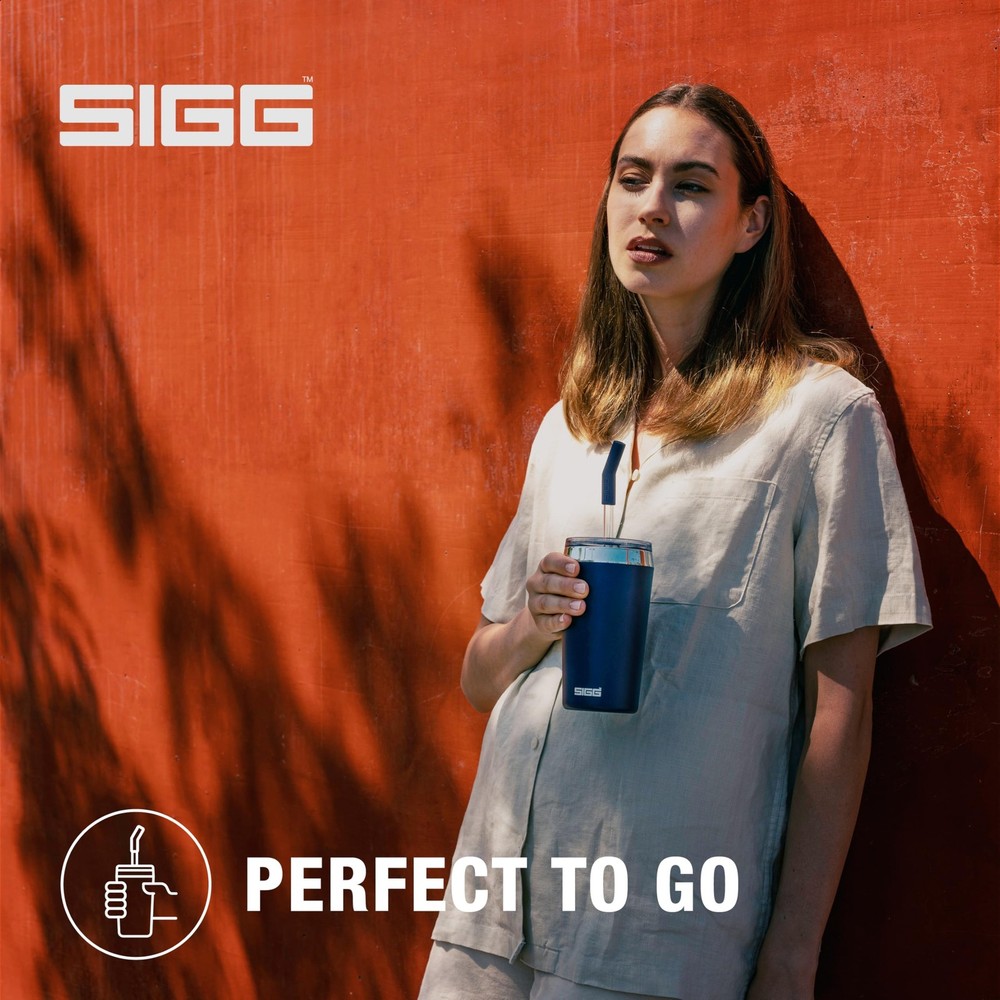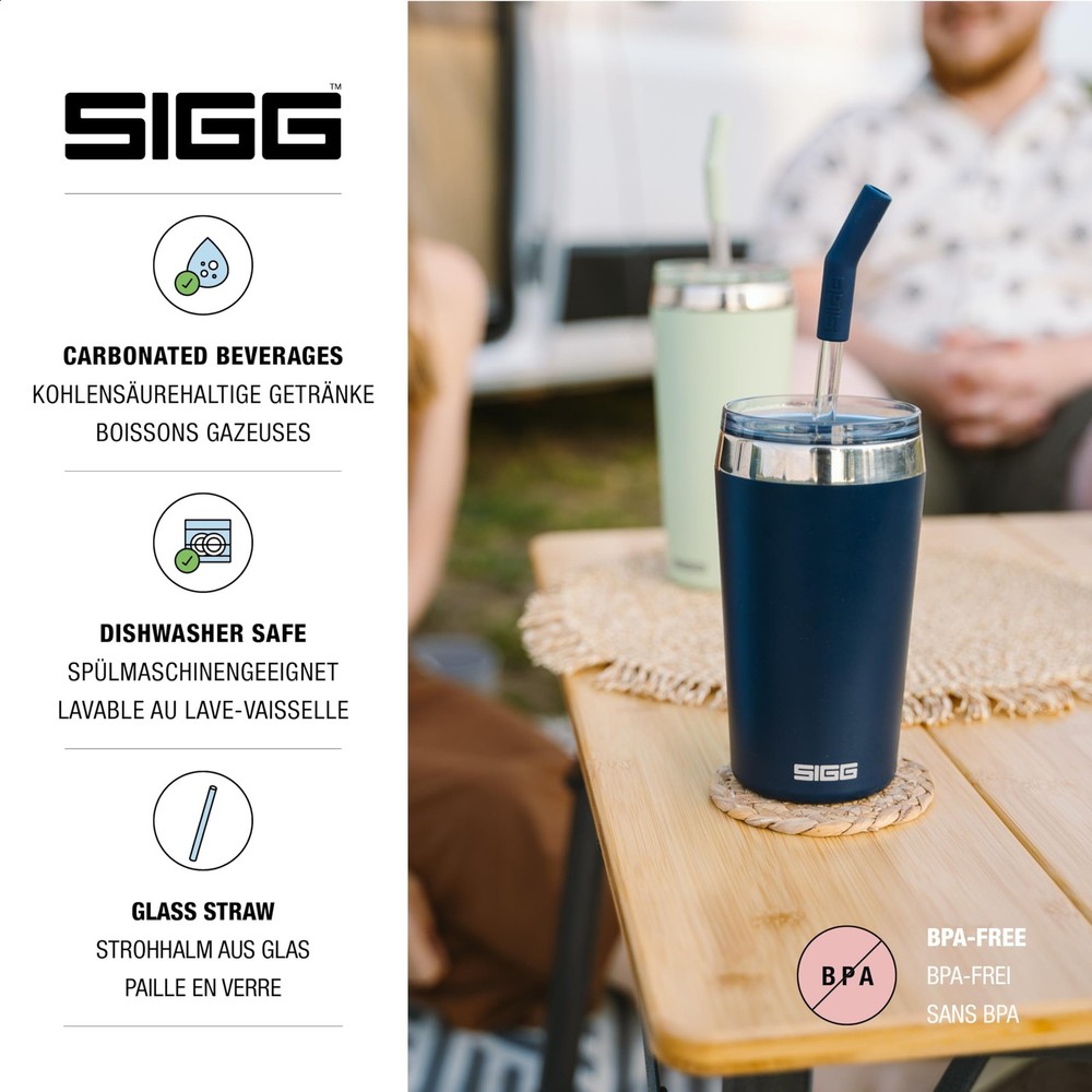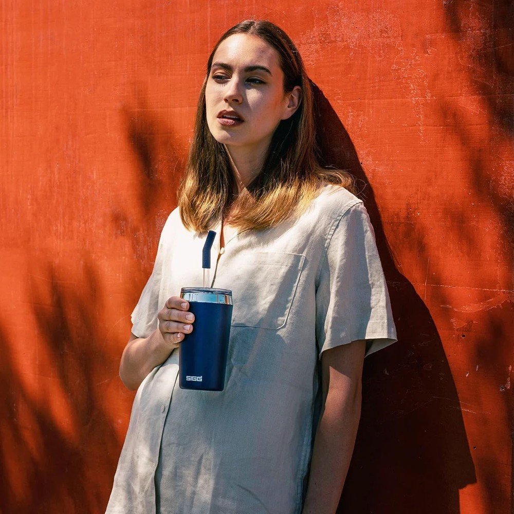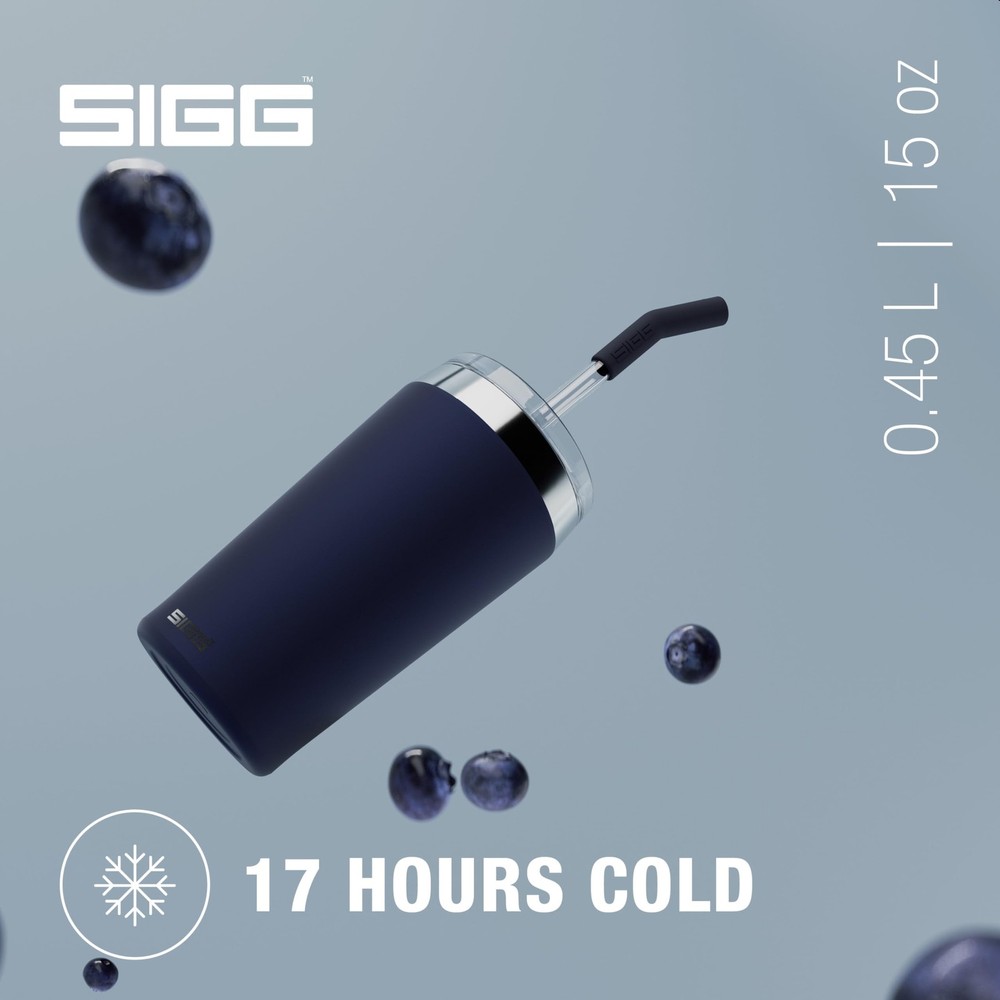 Thermal mug: Ideally suited for being used as a smoothie cup, or for holding morning coffee, refreshing iced tea, or even cocktails at summer parties! Stylish companion: Whether travelling, in the car, or at a garden party, the tumbler with straw and lid looks the part wherever it goes and fits in the majority of cupholders. Quality materials: All parts of the steel cup and shatterproof glass straw with removable silicone mouthpiece are free of BPA and other harmful substances. Easy to clean: Thanks to the wide opening, the travel cup can easily be cleaned by hand with warm water and a sponge. Includes cleaning brush for the straw. Scope of delivery: Helia Tumbler Night Ink 18/8 Stainless Steel 0.45 L, insulated mug with straw-cleaning brush, BPA and pollutant-free, handwash recommended, item number: 6015.20