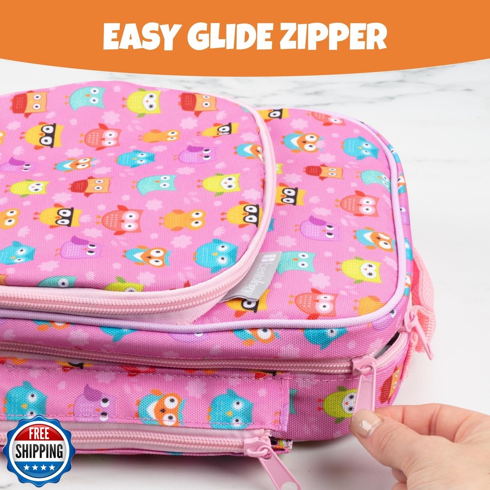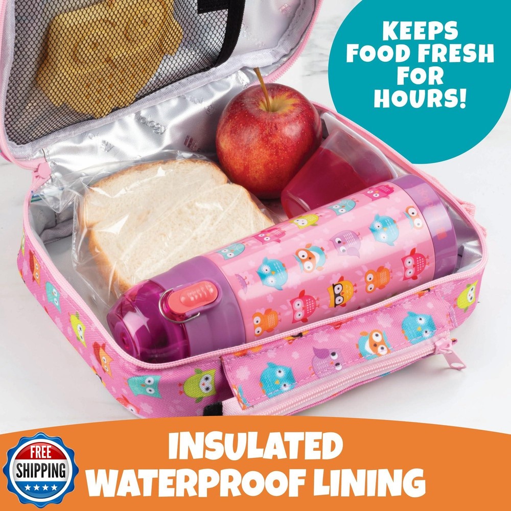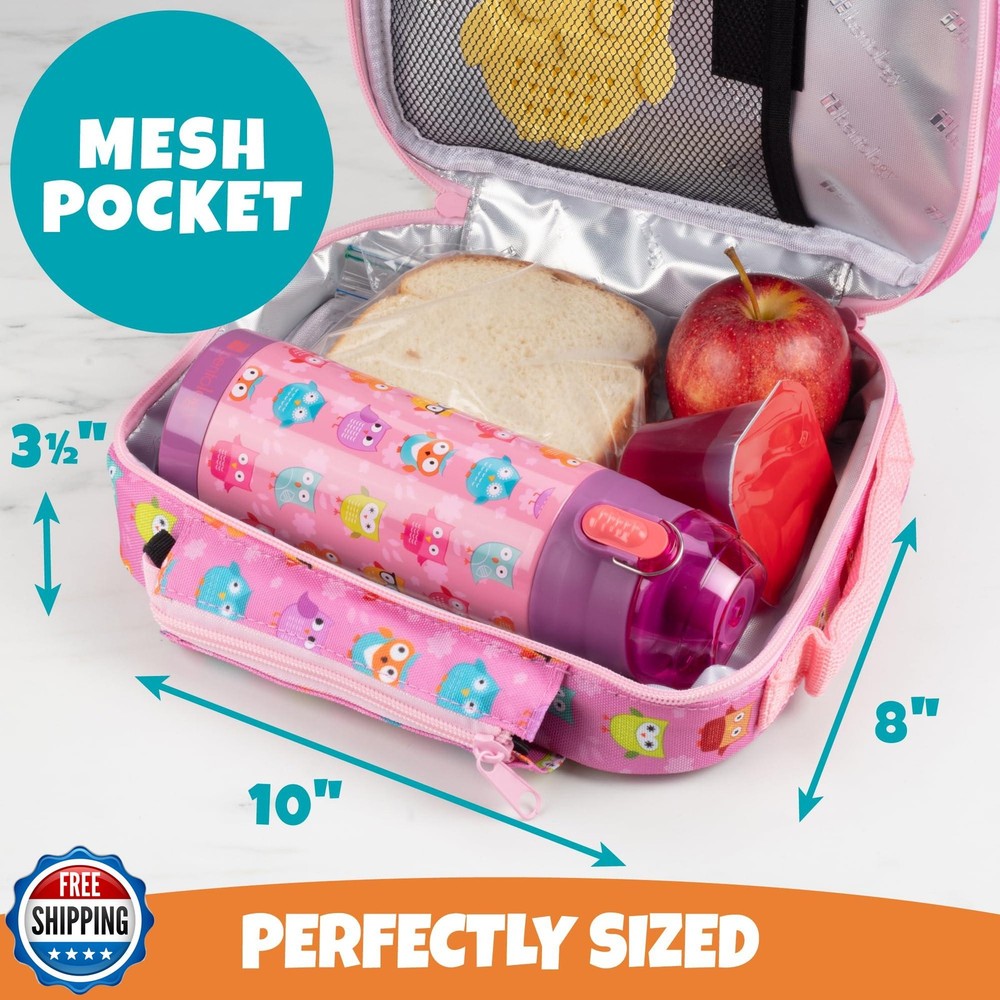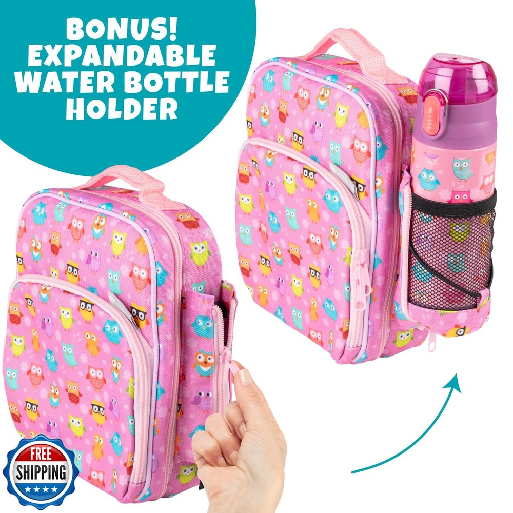 Insulated Lunch Box w Snack Pocket and Water Bottle Holder- Girls or Kids School Lunchbox Tote Keeps Food Hotter or Colder Longer- Reusable Bag Fits Most Bento Boxes Ice Packs Nesting Containers - Owl Features Perfectly Sized Reusable Owl Lunchbox: Great for Back to School, this bag features an external front pocket, an interior mesh pocket, and an expandable waterbottle holder. This spacious lunch tote measuring 10 x 8 x 3.5 inches externally, fits Bentology Bento Box containers, and is compatible with most kid Bento Box brands (sold separately). Food Safe - No Lead, BPA, Phthalates. Suitable for Ages 3+. This listing is for bag only, all other accesories shown not included. Insulated Lunch Bag & Waterproof Lining: Kids will love this durable pink owl animal print Bentology insulated lunch tote that keeps food and drinks fresh for hours! Ideal for bringing your lunch or snacks to School, Summer Camp, Daycare and more! Keep lunch mess free with this easy to wipe waterproof lining. Bonus Expandable Waterbottle Holder: Our bags feature a bonus side pocket with a zipper for your beverage bottle that expands into an adjustable opening fitting most waterbottles sizes. Leaving you hands free as you travel! Padded Carrying Handle: Our thick handle offers a more comfortable carrying experience to and from your mealtime destination. Easy Glide Zipper: This premium style bag uses a no-catch zipper system elevating your mealtime experience. Upgrade Mealtime: Add some Lunch with Personality, with the rest of Bentology's Lunch Bags, Waterbottles, Food Jars, and more! Having been trusted in business for over 20 Years, you can count on our products working for you! Shipping Free & Fast Shipping: We offer free shipping to most of the USA with a normal delivery time of 3-7 days. However, due to the current situation, additional delivery time (up to 3 weeks) may be required for some items. Alternative Carriers: We may use alternative carriers (e.g., USPS, FedEx, UPS) to ensure your package arrives safely and on time. Due to the use of multiple carriers, we are unable to provide a tracking number automatically. Handling Time: Orders are processed and shipped within 1-2 business days of receiving cleared payment. Shipping Restrictions: Shipping to Alaska, Hawaii, Puerto Rico, Guam, and other US territories may incur shipping charges or delivery restrictions. Please contact us before ordering, or your order can be refunded/cancelled. State Restrictions: Certain items may not be shipped to California due to state regulations. Contact for Tracking Updates: If you require tracking updates or have any concerns about the delivery of your order, please feel free to contact us, and we will be happy to assist you. Return Policy 30-Day Hassle-Free Returns: If you are not completely satisfied with your purchase, you can return the item for free within 30 days of receiving it for a full refund or exchange. Easy Return Process: Contact us, and we will provide you with a prepaid return shipping label and detailed instructions. No Restocking Fee: There are no restocking fees for returns. However, the buyer is responsible for return shipping costs if the return is not due to a seller"s error. Refund Processing: Refunds will be processed within 1 business day of receiving the returned item in its original condition. Feedback Your feedback is extremely important to us. We strive to provide the best products and customer service possible. If you are satisfied with your purchase, please take a moment to leave us a positive review. If you have any concerns or issues with your order, please contact us before leaving negative feedback. We are committed to resolving any problems and ensuring your satisfaction. Contact Us If you have any questions or concerns, please feel free to reach out to our customer support team. You can contact us through the eBay messaging system. We are available Monday to Friday, 9:00 am to 5:00 pm EST, and we will do our best to respond to your inquiry within 24 hours. Thank you for supporting our small family business!