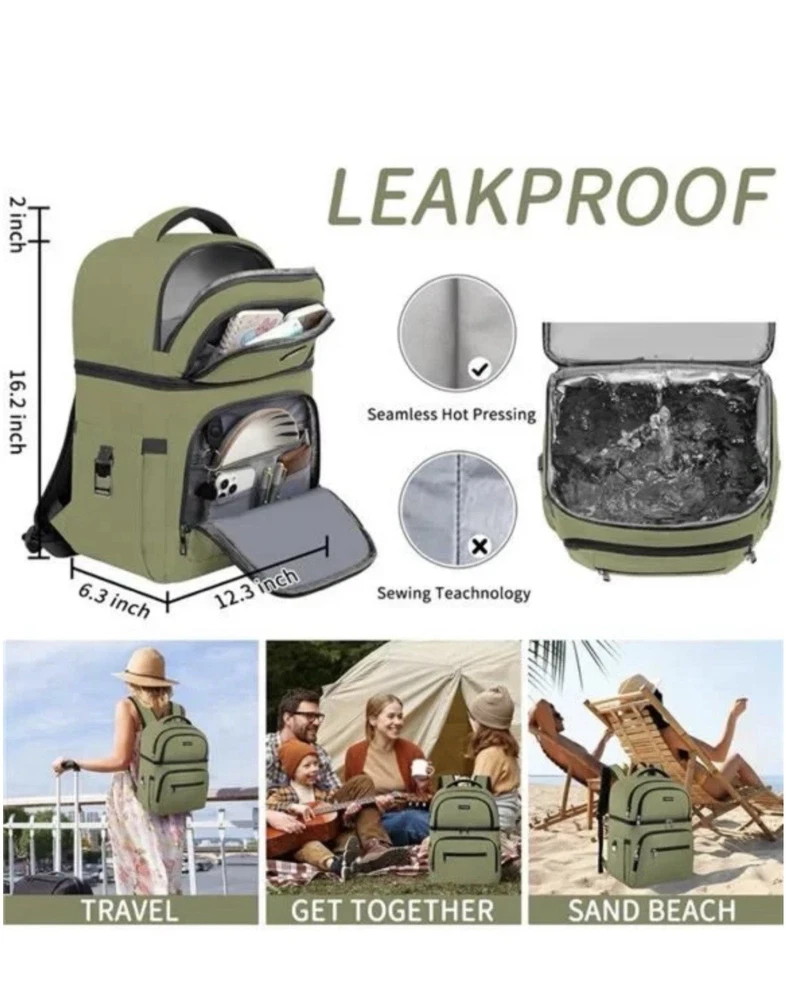 🧿DUAL COMPARTMENT BACKPACK COOLER: Insulated cooler backpack is roomy capacity to pack all your necessities, which with a main leak proof cooler compartment And upper half have space enough. Dimension of the cooler backpack: 12.3 x 6.3 x 16.2 inch 🧿INSULATED & LEAKPROOF COOLER DESIGN: The inner insulation of the cooler backpack is thickened with foam and the leak-proof PEVA liner works together to keep cold for hours without worrying about leakage. The insulated cooler backpack is a outdoor activities partner. You can use it as an insulated lunch backpack as well as a portable cooler for a beach, picnic, hiking, fishing, camping, travel or other outdoor activities 🧿RFID BACKPACK & ANTI-THEFT:RFID Pockets with RFID-radio frequency identification helps secure personal data encoded on you credit cards, IDs and passports.The oversized anti-theft pocket on the back of the backpack makes it easy to put your phone, passports and wallet 🧿MULTIPLE POCKETS: The backpack cooler leakproof includes 1 main large insulated leak proof storage compartment, 1 upper half compartment used to organize dry items, 1 large front zipper pocket for knife, fork and plate. 🧿LIGHTWEIGHT: The backpack cooler made of waterproof fabric which will not rip, tear or scratch but also lightweight. Breathable mesh pads on back make it convenient to carry for long durations, adjustable shoulder straps and waist straps can distribute the load, earphone/glasses Hang buckle on the strap for your easily use.