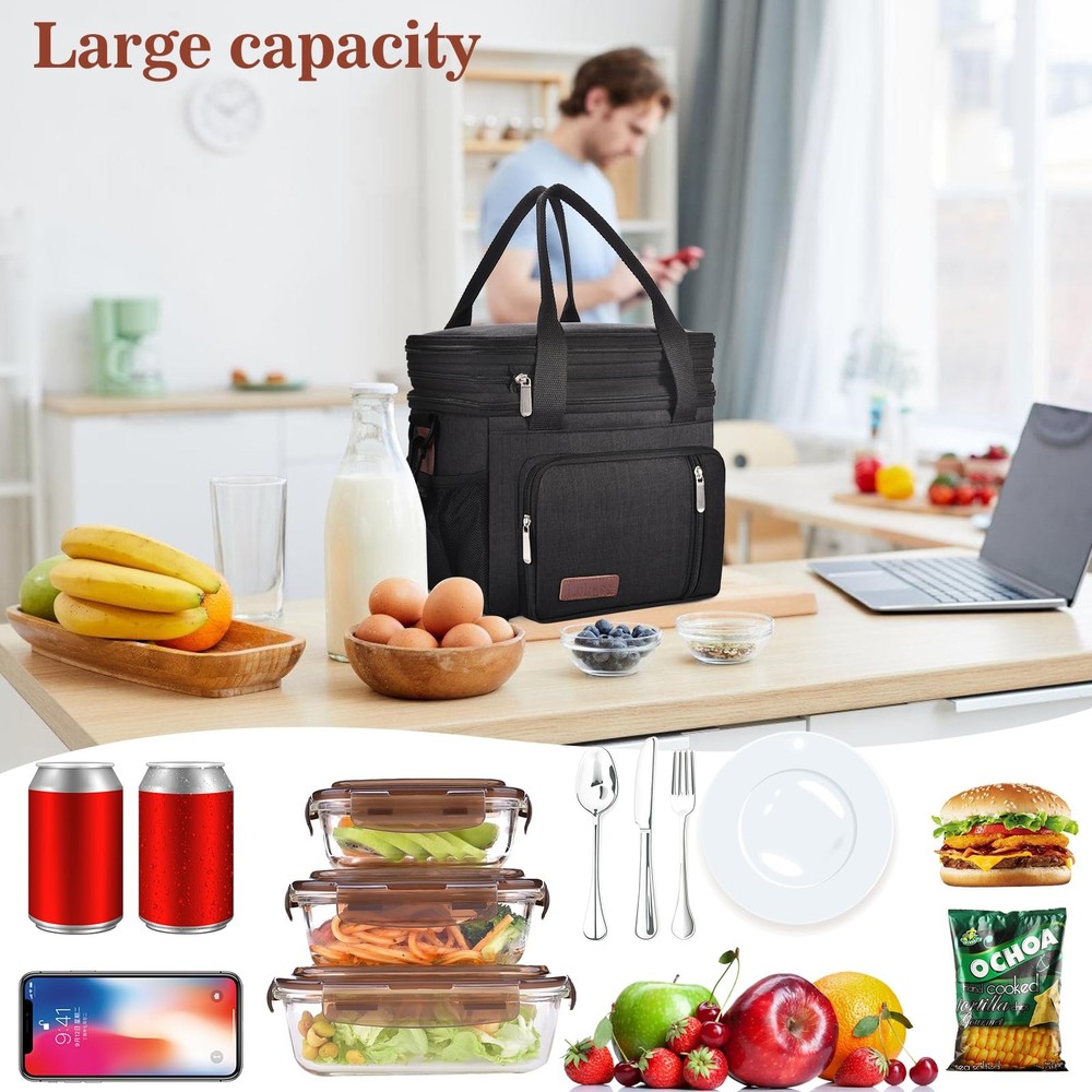 lunch bag for men lunch box for mens lunch box insulated lunch bag for men lunchbox men lunch boxes for men lunch pales for men meal prep lunch box for women womens lunch box for work adult lunch boxes for men insulated lunch box mens lunch bag men lunch bags for work insulated lunch box for men hard lunch box for men lunch cooler for men work loncheras para hombres de trabajo mens lunch boxes for work mens lunch box insulated for work 【 Expandable】With reinforced metal zipper, top compartment of expandable lunch box can be easily unzipped. The original size is 11.4*8.7*9 inch (L*W*H), storing 12L. And the expandable size could be 11.4*8.7*11.8 inch (L*W*H),storing 16L. The main compartment can store drinks, fruits, beer, ice packs, etc., and you can expand the upper space for some snacks. 【Unique Design】 Lunch cooler bag has thicken fabric to make the bag stand upright, the meal bag will not be wrinkled and deformed. Double layer design can separate dry and wet. This lunch bag will keep your food warm for up to eight hours, depending on the environment. The bottom is PU leather with four plastic foot nails that is water-resistant and stain-resistant. 【 Leak-proof】 The exterior of lunch box is made of polyester material, water-resistant & scratch-resistant, which is lightweight and wear-resistant.The interior of the women's lunch bag is insulated layer that is made of thickened foam padding and soft EVA for effective insulation and water-resistance. The EVA lining of the women's lunch box is smooth and easy to clean. 【 Multi-pockets】 There is a mesh bag on the upper interior, all kinds of cutlery can be placed, such as knives, forks, spoons and so on. This large lunch box has two side pockets, the side mesh pockets can store umbrella or water bottle. The front pocket can be placed keys or cell phones, and other commonly used items can be easily found. There is also a back anti-theft pocket for cash or coins. 【Durable】The side handles and shoulder straps are cotton webbing and feature reinforced stitching to ensure maximum durability. This lunch bag also uses metal zippers to extend the life of the reusable lunch box. This durable adult lunch bag can be used in a variety of situations, such as the office, , home, park, beach, etc.