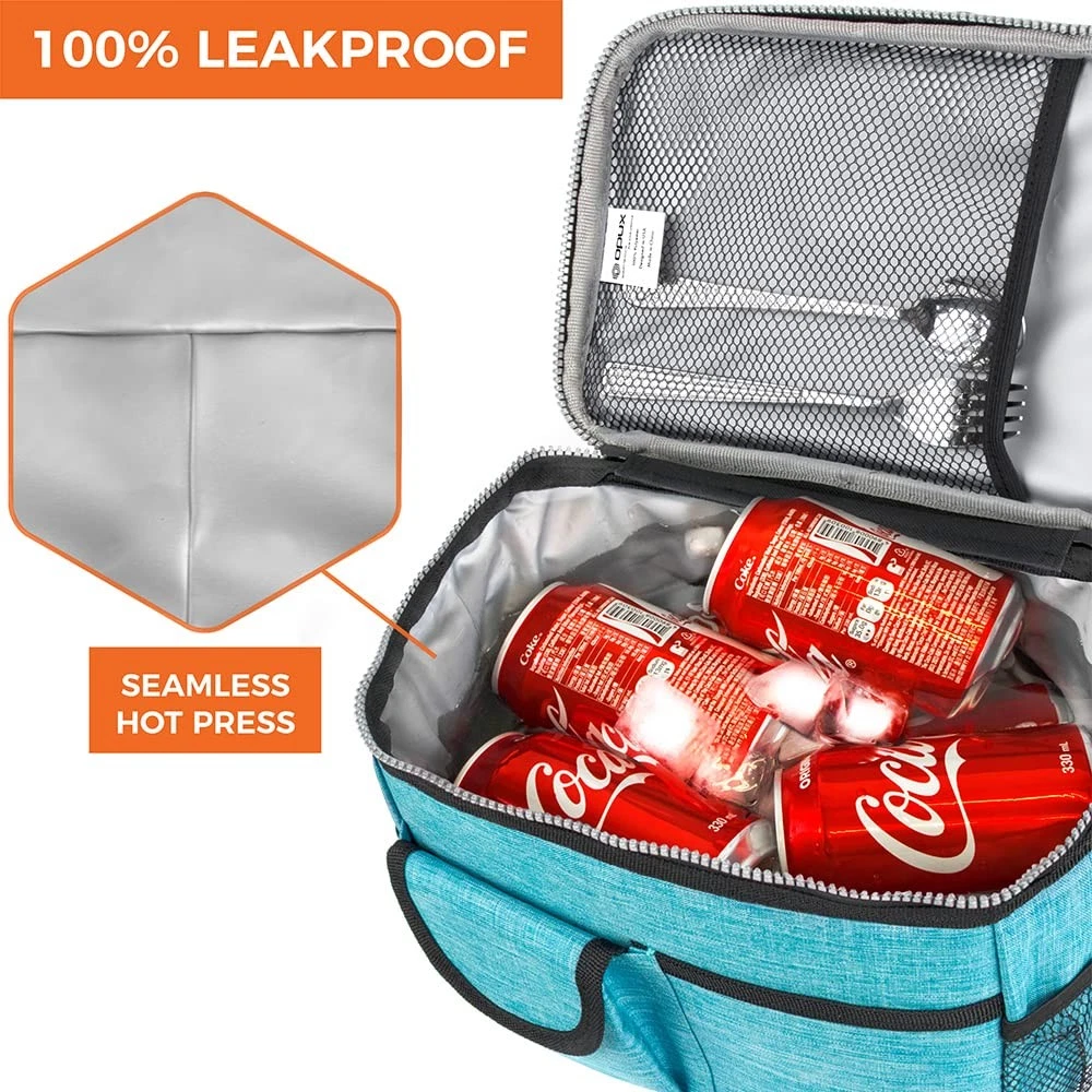 Medium Capacity Lunch Box with Shoulder Straps and Pockets This durable, functional, and easy to use Premium Lunch Bag is perfect for you to taking food with you to a picnic, the beach, traveling on a road trip, and to sporting games. Equipped with adjustable straps and reinforced dual zippers, this insulated lunch cooler is able to be carried in different ways! Easy to carry on your shoulder or hand held. Shoulder strap is adjustable and can be extended up to 48" Equipped with 2 front pockets and 2 mesh pockets for storing bottles, utensils, napkins and more. Dual reinforced zippers for easy opening and maximum durability. Sizes: Medium measures 10" x 7" x 8" (L x W x H), 14 Can Capacity | Tall measures 10 x 8 x 9.5 (L x W x H), 18 Can Capacity creates quality products for your many lifestyles Our Vision To provide premium kitchen and wine products that greatly simplifies your life. We will continue to innovate and bring exciting products to market so you can achieve more in life! Our Products At , we offer an extensive line of kitchen tools (such as salt & pepper mills, coffee accessories), lunch bags, and wine bags/accessories made of highest quality for all occasions. Our products are meticulously designed with materials and functions that truly simplify your life so you can focus on creating your favorite meals or entertaining your guests. INSULATED LUNCH BOX FOR WORK: This medium lunch cooler bag measured as 10 x 7 x 7.75 inch, holding up to 14 cans of soda or 8L of food. lunchbox fits large meals, meal preps, bento boxes, making this leakproof insulated lunch box a lunch supply essentials for adults, men, women, kids, teens, boys, and girls. LEAKPROOF LUNCH BAG: The mens lunch bag for work features a food-grade PEVA lining that is leakproof and easy to clean. The thick thermal foam insulation ensures your food stays hot or cold for hours. Stay organized with our portable cooler bag that keeps meals fresh and containers secure. This soft cooler lunch box is great for taking to school, office, work, and gym. MULTI-POCKET & PORTABLE: Our lunch bag for working women men features an adjustable shoulder strap that allows you to carry it comfortably to school, office, or picnic. The lunch cooler, lunchbox for adults includes side mesh bottle holders and front pocket to store utensils, napkins, and lunch essentials. The dual zippers ensure easy opening and closing of the lunch pail. EASY TO CARE & DURABLE: Our lunchbag is crafted from heavy duty 600D Oxford polyester that prevents rips and tears, ensuring long-lasting durability. Whether you're an adult or student, our reusable lunch bag lunchbox can handle it all. Simply wipe it with a damp cloth to keep it clean and fresh. Thick soft material protects your food during travel.. BLUE LUNCH BAG FOR ALL: Our sea blue lunch box is perfect for carrying meals to work, school, hiking, and picnics. The insulated cooler bag is leakproof with vibrant color options, making our cooler lunch bag ideal for adults, men, women, kids, teens, boys, and girls. Passed CPSIA Lead, CSPA Phthalates & Cadmium Test - Manufacturer recommended age: Ages 3+.