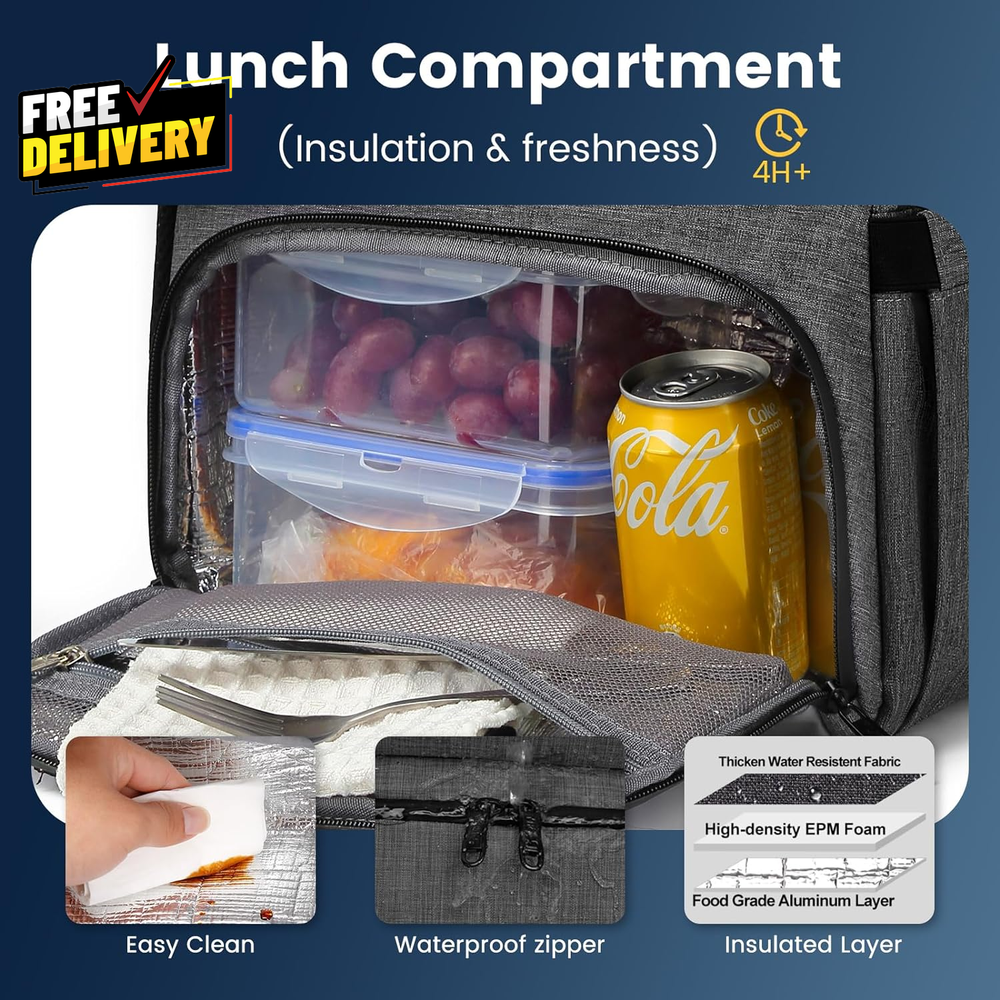 This lunch backpack is a game-changer! The insulation keeps my food fresh and drinks cold for hours, and the leakproof design gives me peace of mind. It fits my 15.6-inch laptop perfectly, making it ideal for work or weekend trips. The stylish look works for any occasion, and the easy-to-clean material is a huge plus. Highly recommend for anyone who needs a practical and versatile bag!