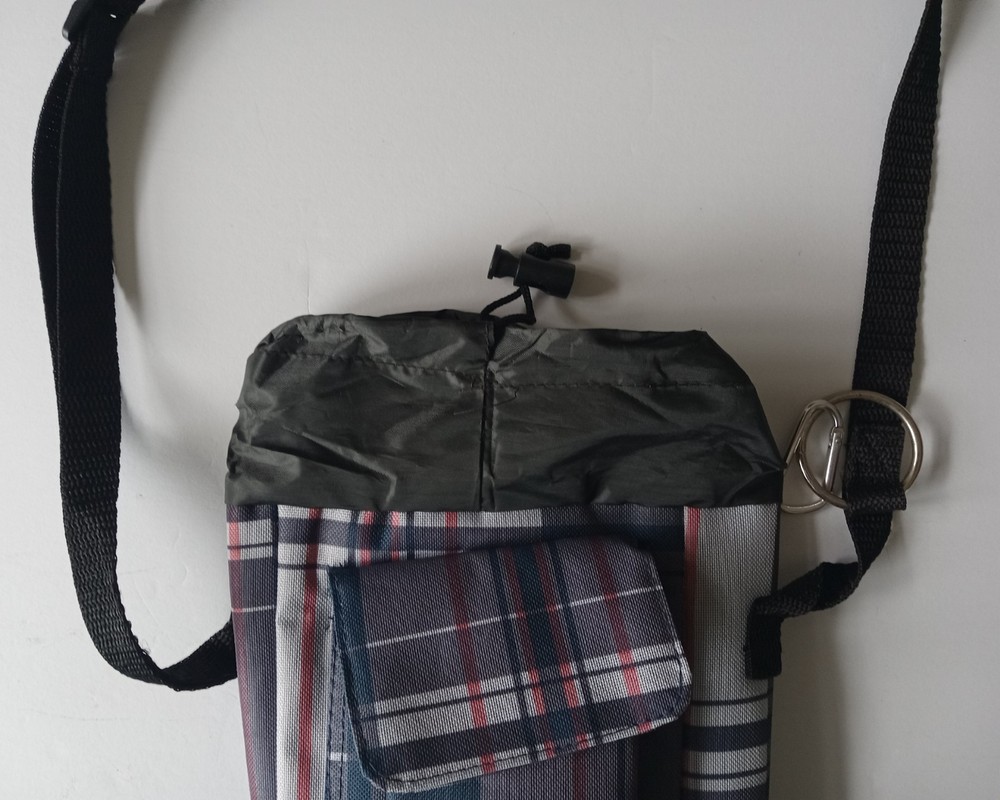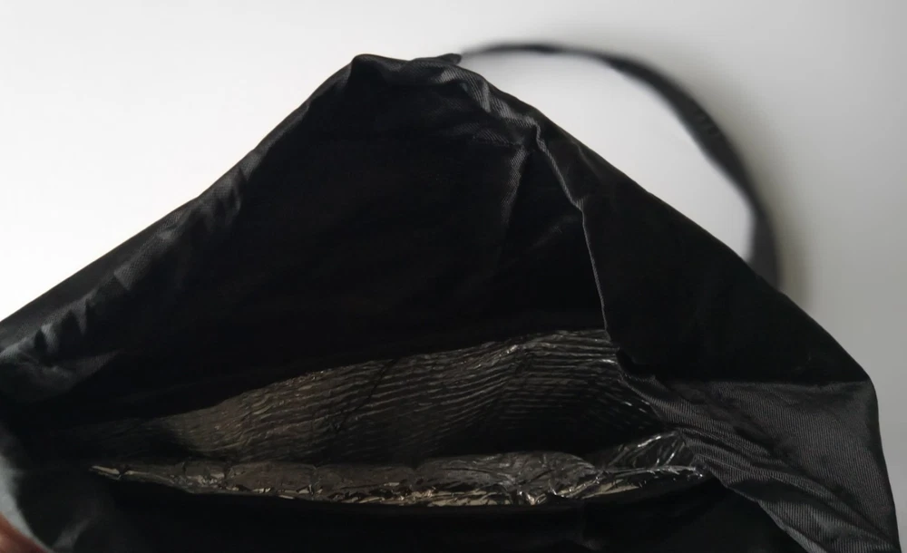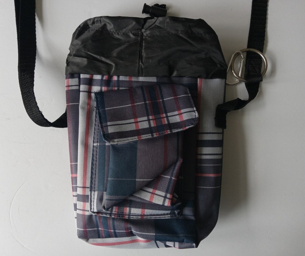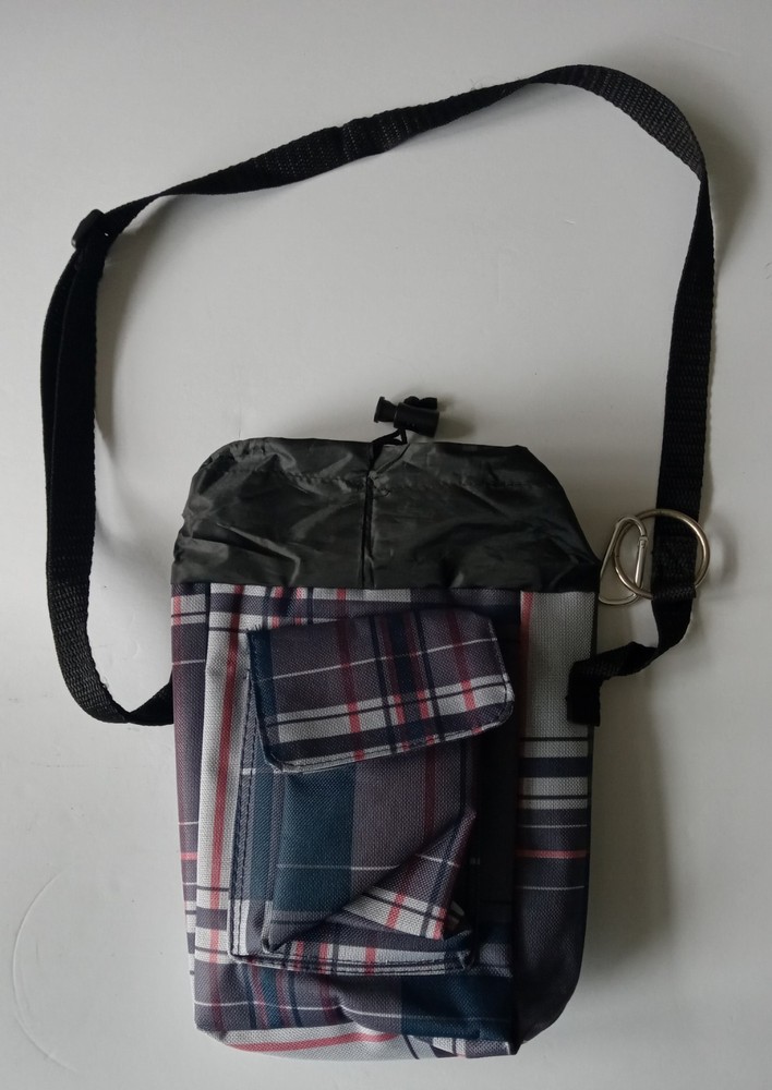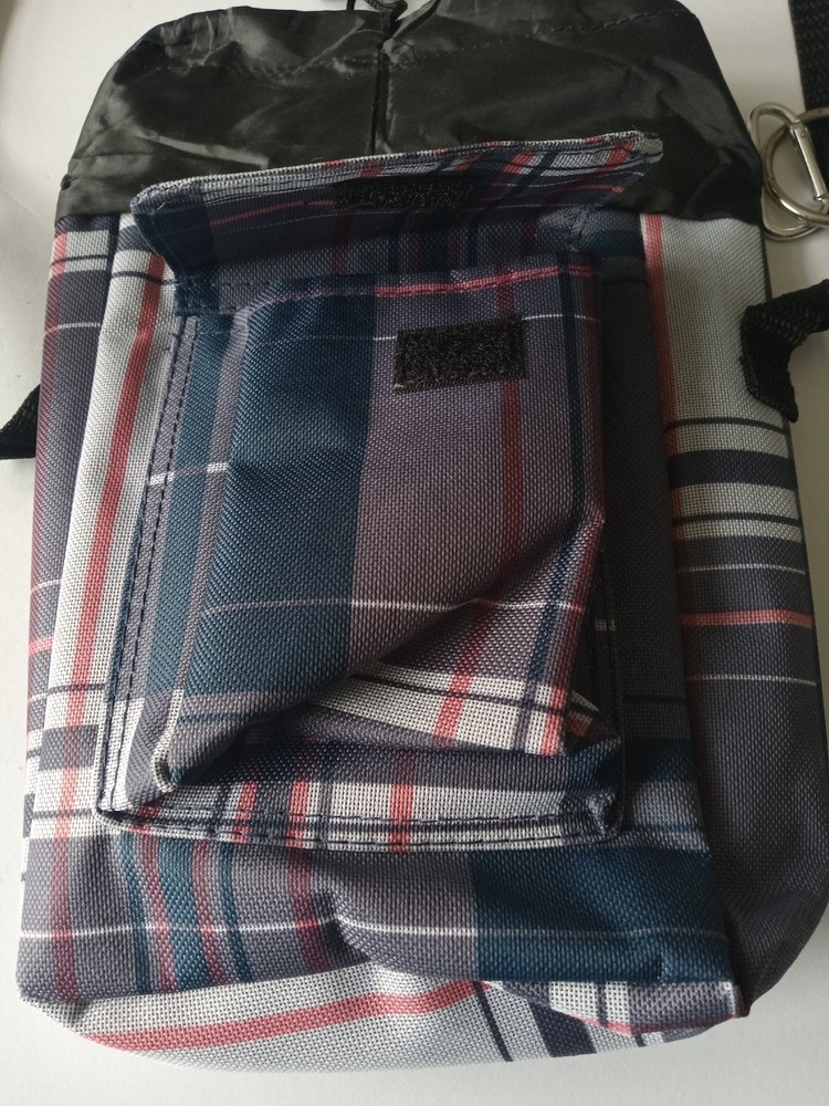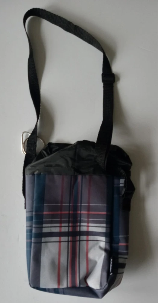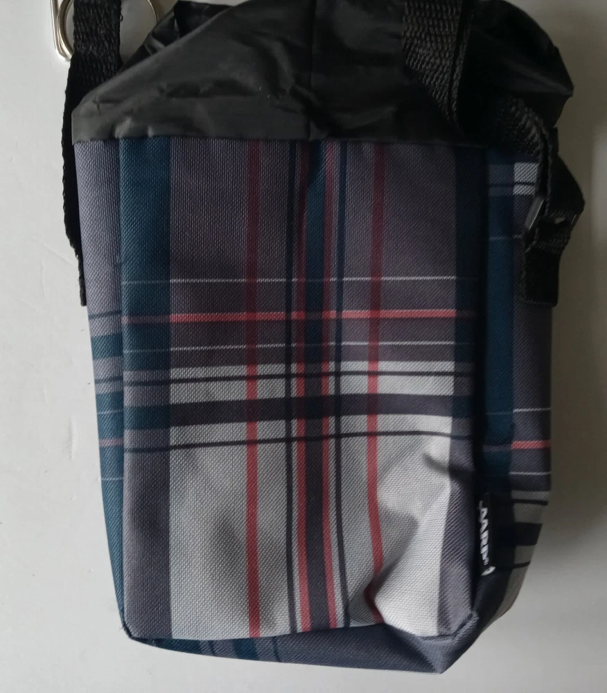 Insulated Lunch Bag with Draw String Top closured and front Velcro closure compartment. The bag has a long adjustable strap. The bag is in very good like new condition with no major marks, stains, scratches, torn or missing parts. Additional photos upon request. Item will be shipped in safe and secure packaging.